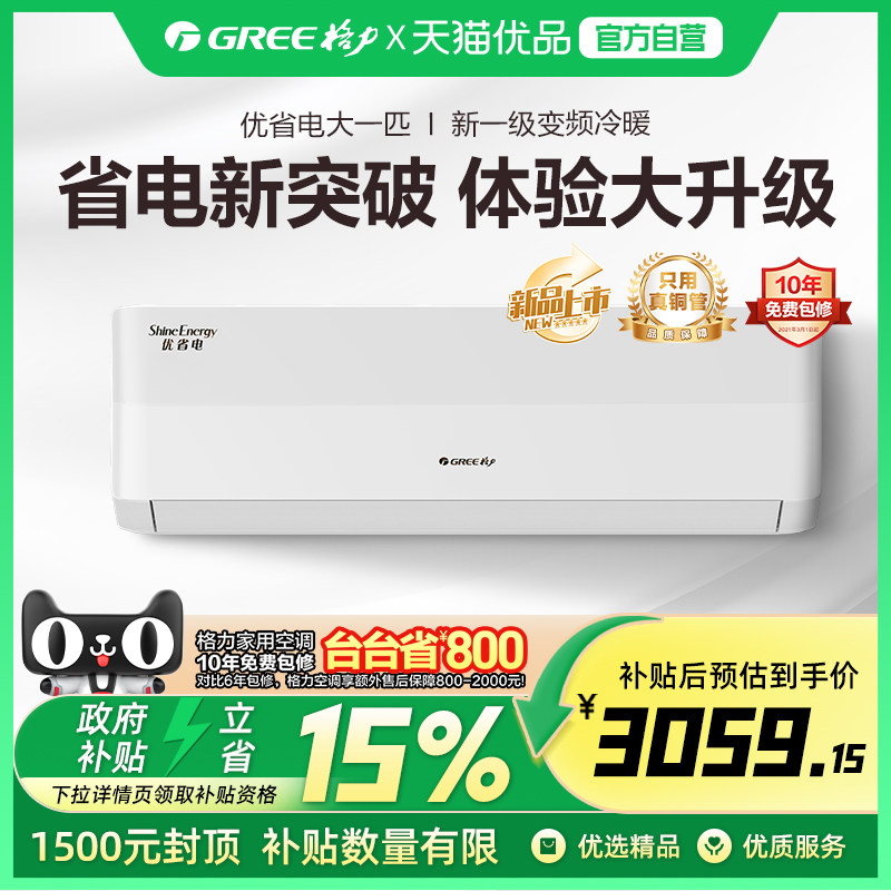 【国补8折】海尔空调1.5匹家用一级能效变频卧室挂机冷暖E1旗舰店