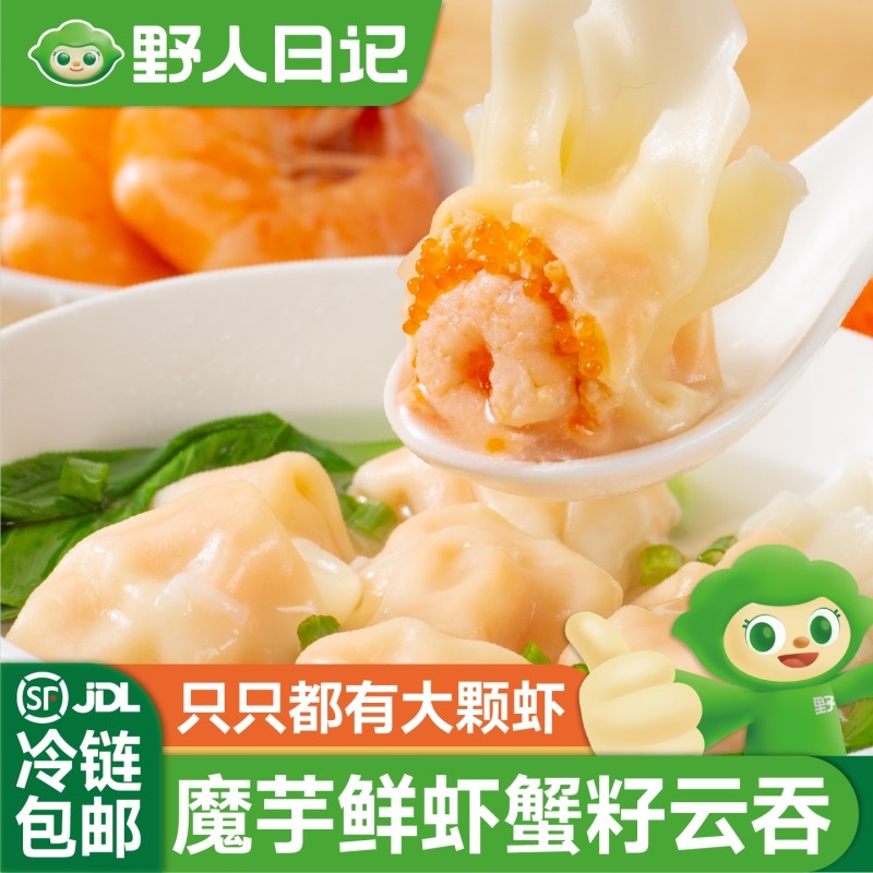 野人日记魔芋鲜虾蟹籽云吞虾仁大馄饨广式早餐方便速食混沌夜宵