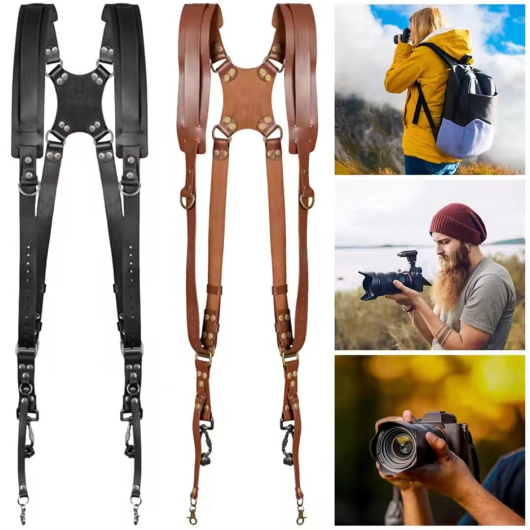 头层皮相机背带纯手工头层皮X型双肩带欧美复古摄影单反减压肩带