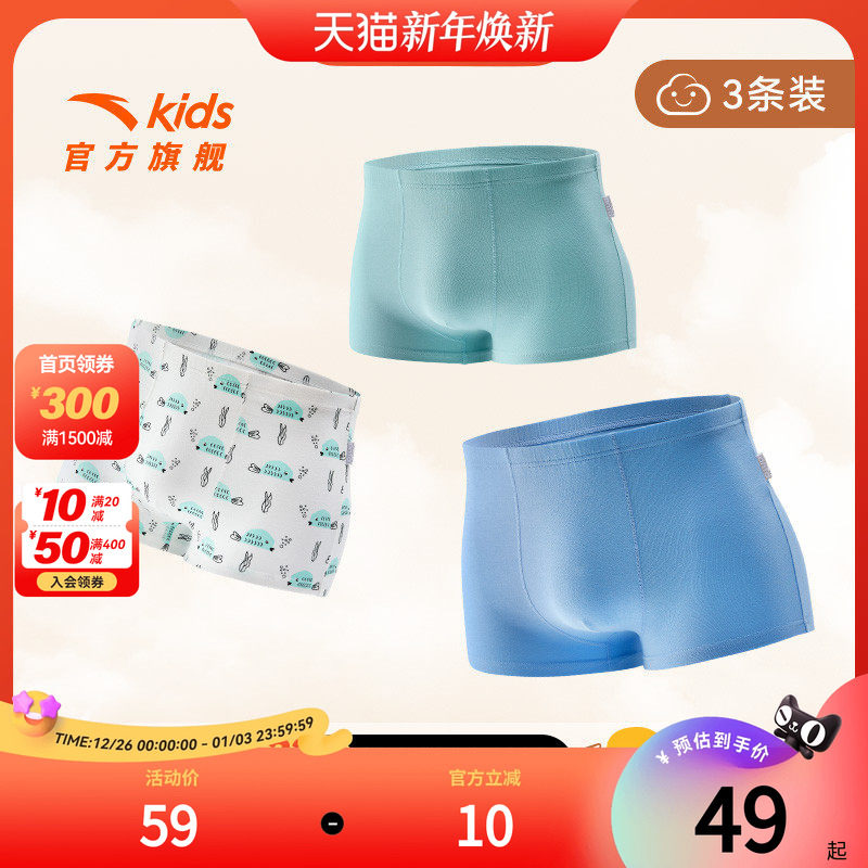安踏儿童内裤棉三条装大小男女童四角短裤抗菌舒适平角裤不夹PP
