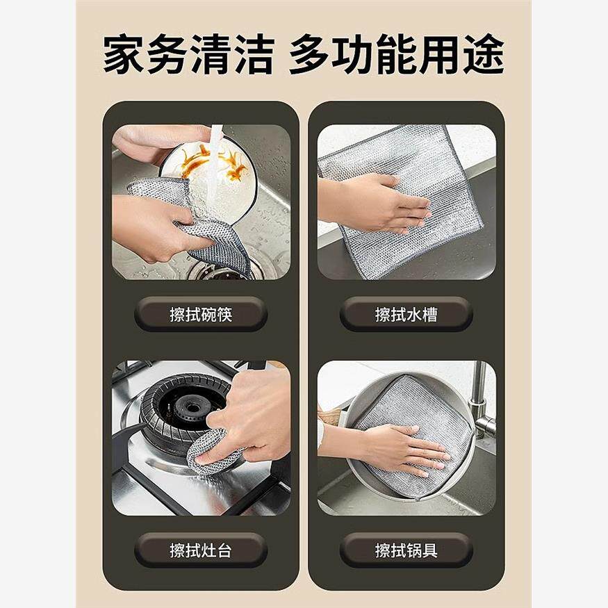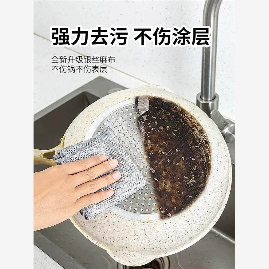 双层钢丝球抹布洗碗布厨房清洁专用加厚金属丝不沾油刷洗锅洗碗巾