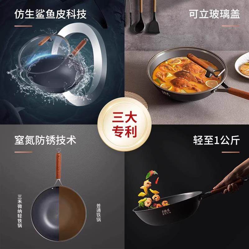 三禾微纳不沾轻铁锅双层复合材质纯木质手柄TC30T4、TC32T4