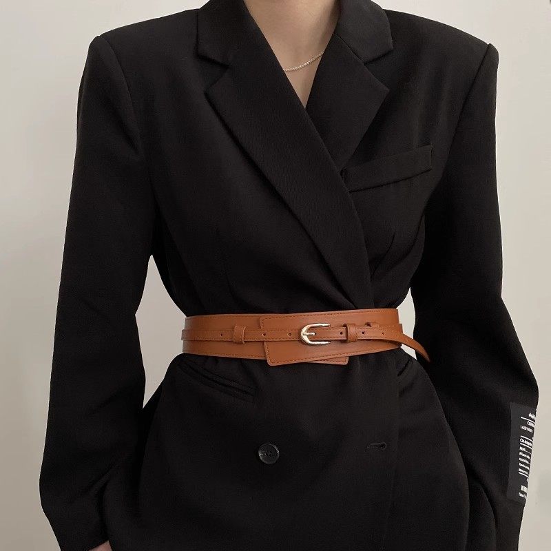 腰带女士2025新款高级感装饰连衣裙配西装外套时尚宽腰封皮带黑色