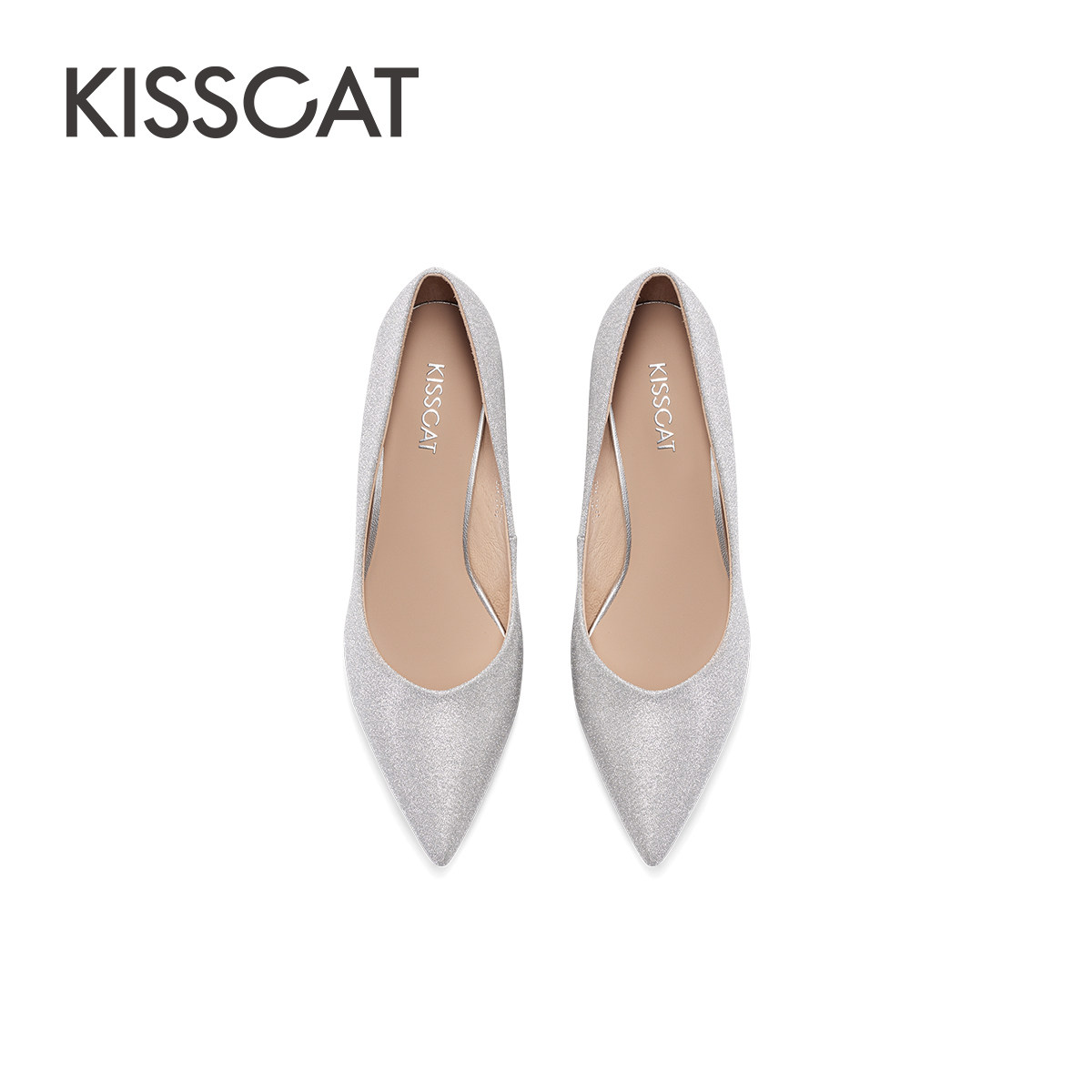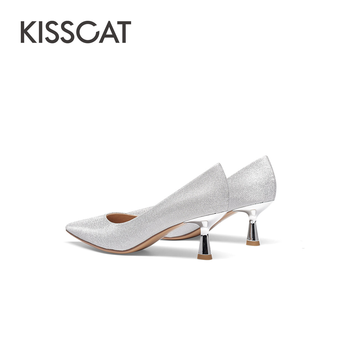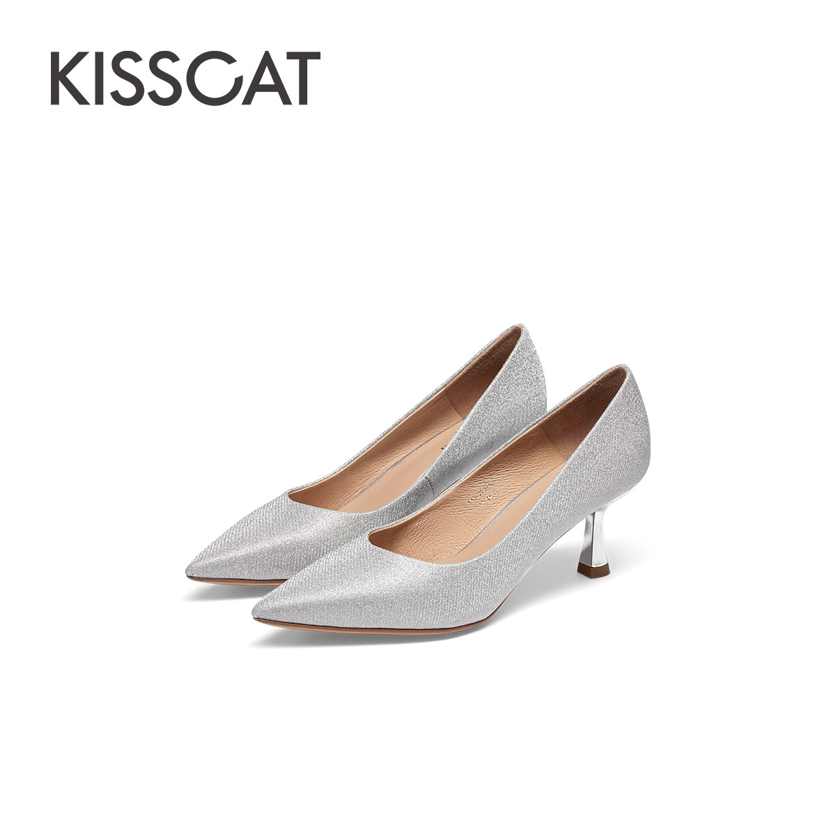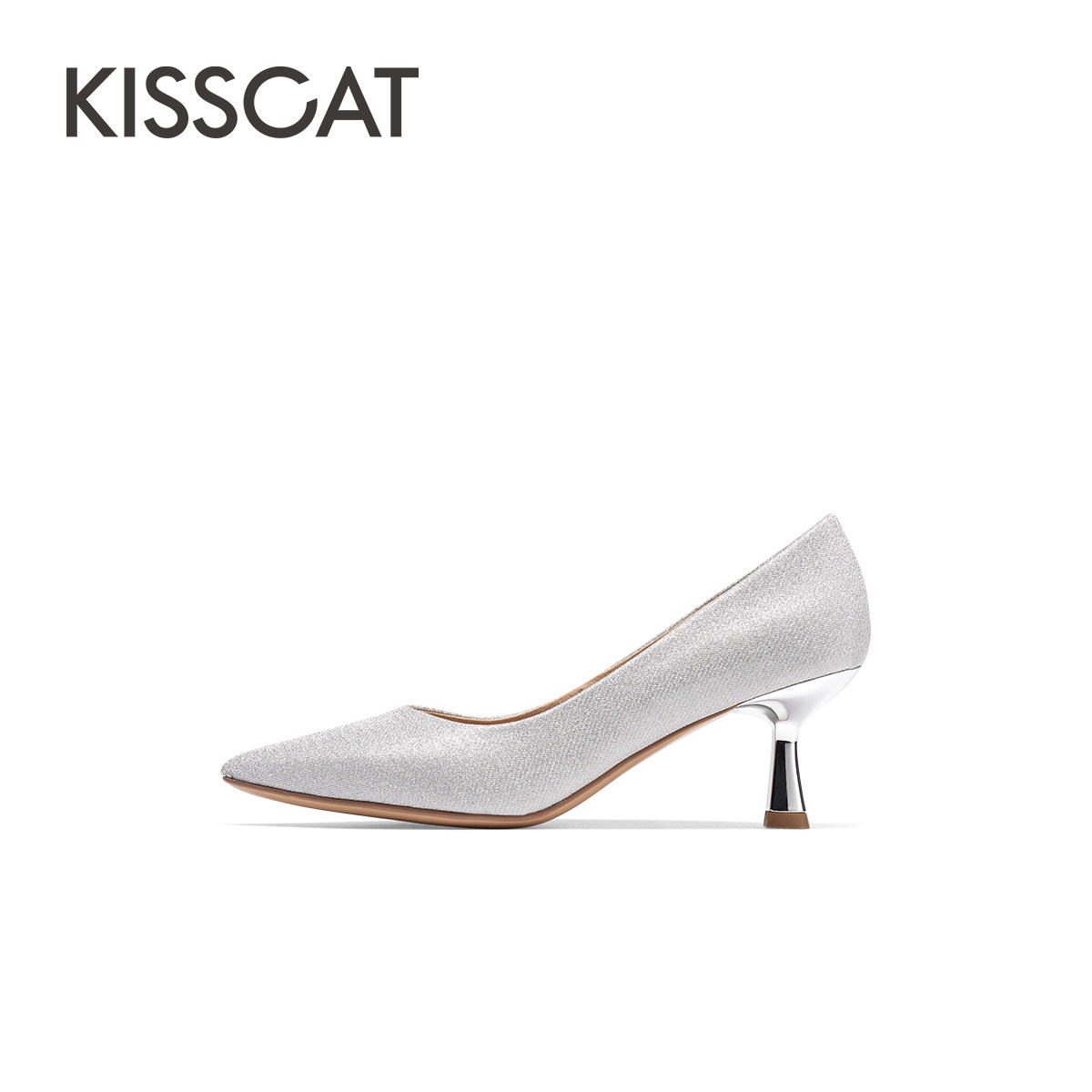 KISSCAT接吻猫秋季新款通勤气质高跟鞋闪耀水晶尖头单鞋女