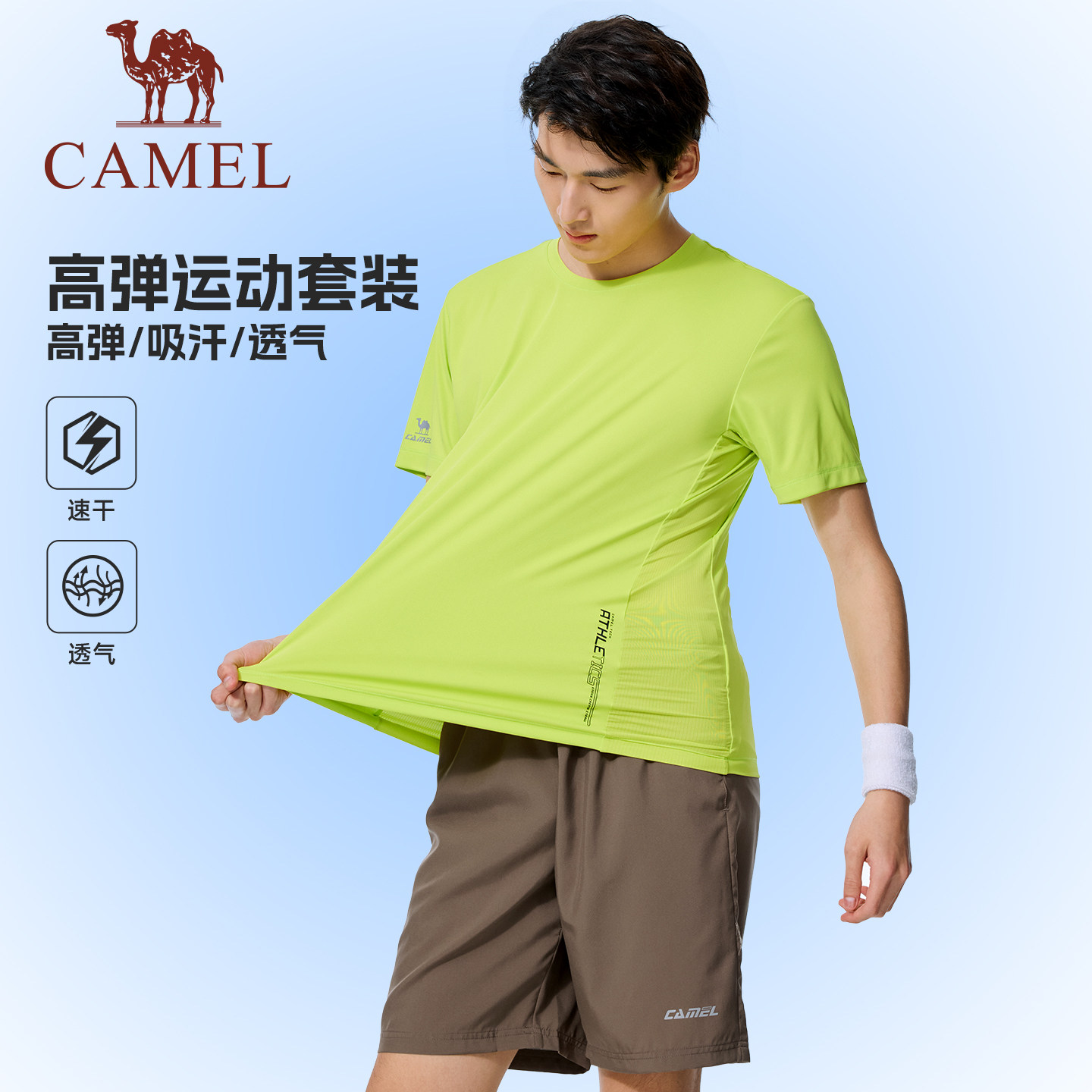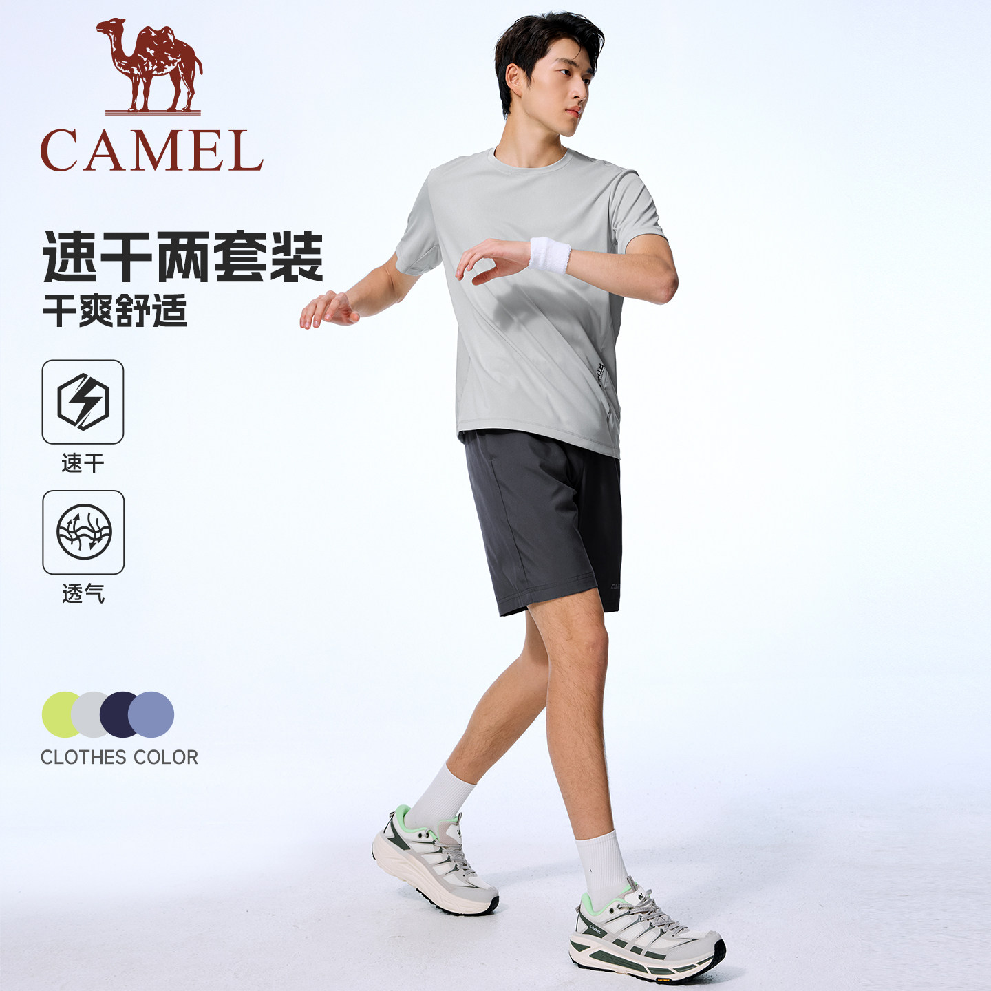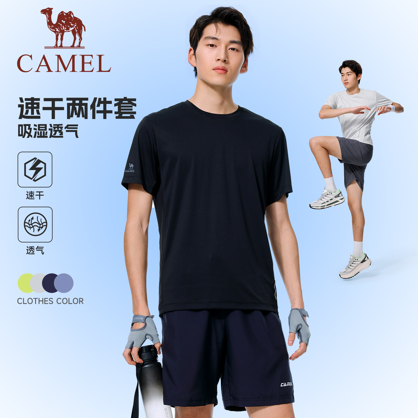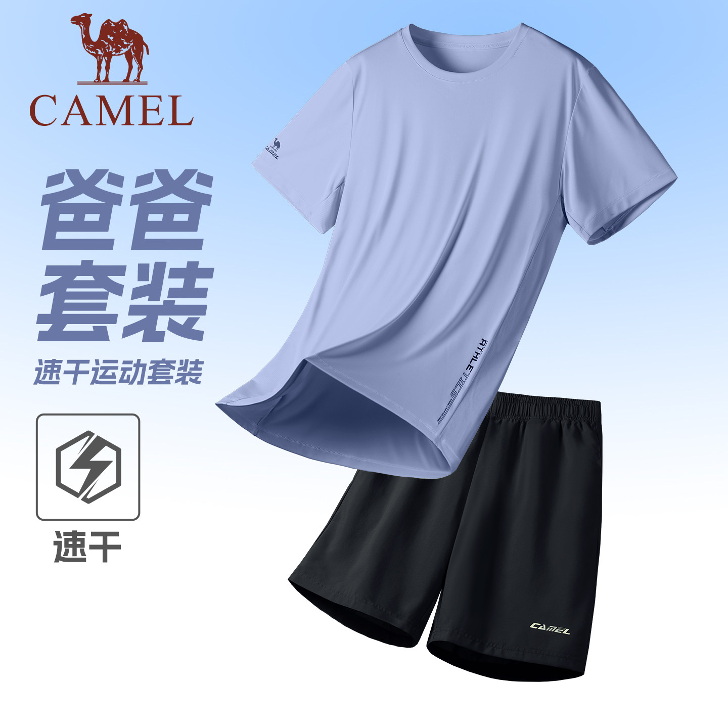 骆驼男装运动套装男夏速干T恤透气短裤跑步羽毛球健身吸汗两件套