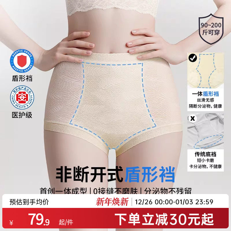 草本初色妇炎洁内裤女2025新款中高腰加长纯棉底裆无痕抗菌三角裤