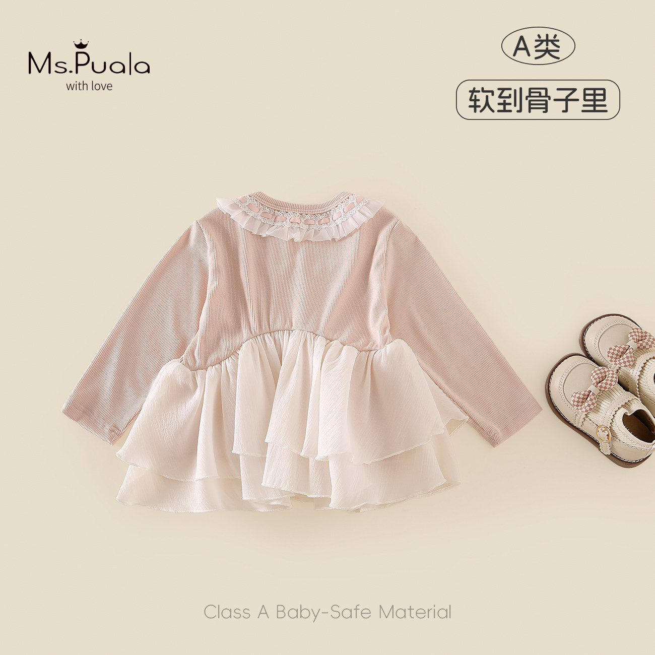 Ms.Puala女童打底衫裙2026春款韩系婴幼儿T恤拼接裙摆女宝宝上衣