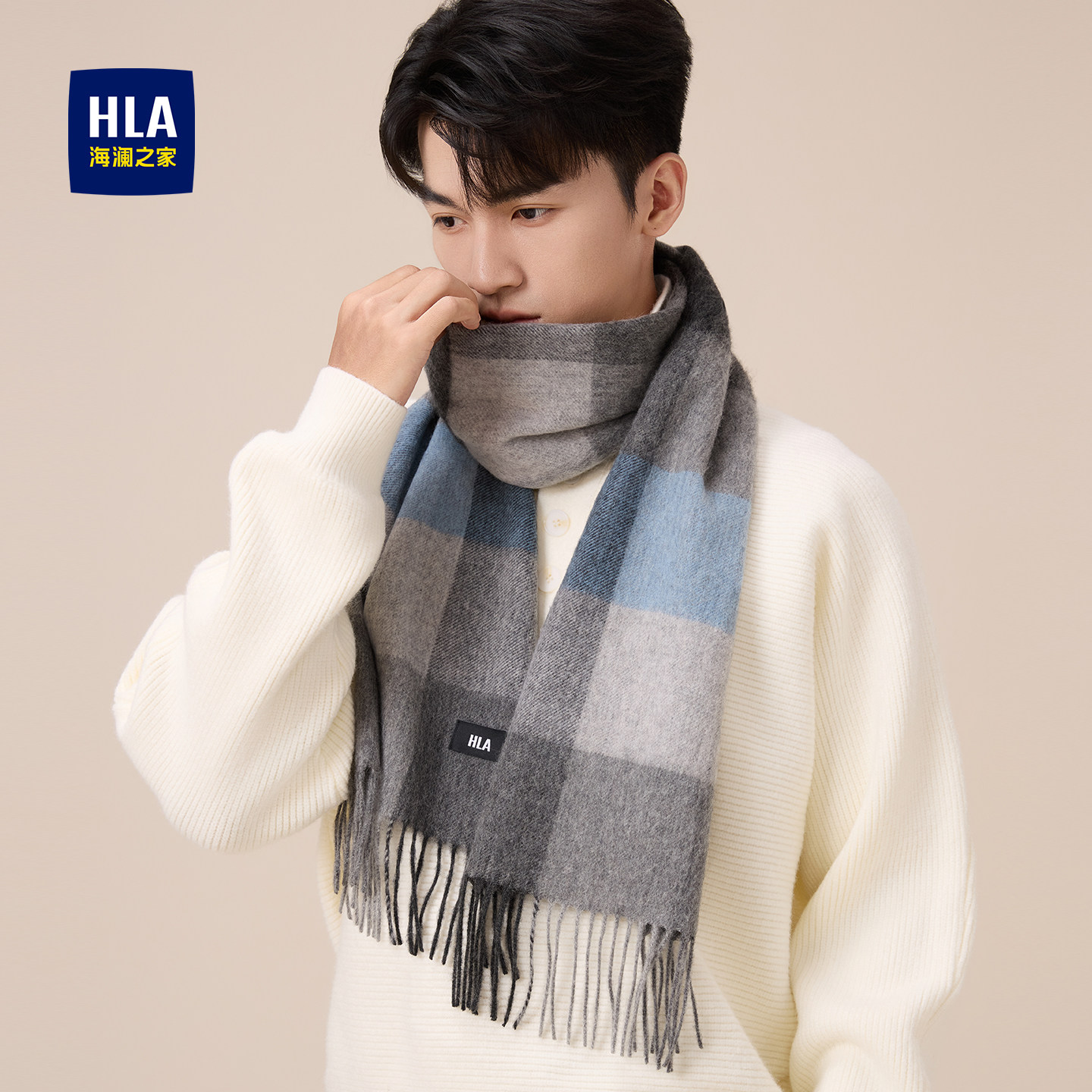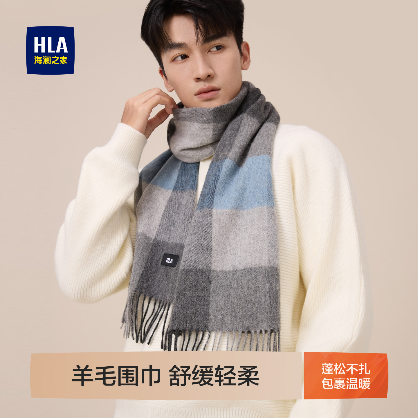 海澜之家围巾男士新款绵羊毛秋冬保暖户外骑行礼盒礼物送男友围脖