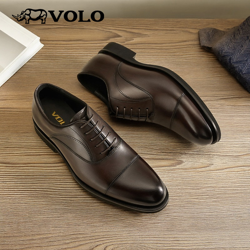 VOLO/犀牛皮鞋男款2025新款尖头真皮男士正装商务结婚新郎牛津鞋