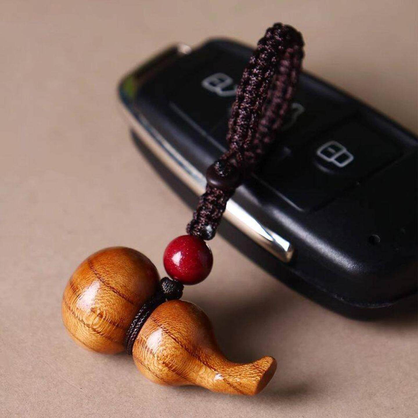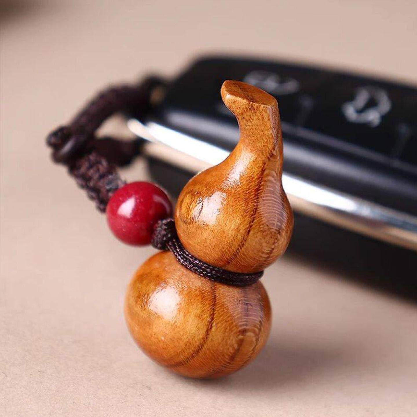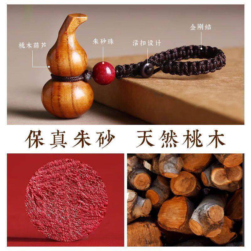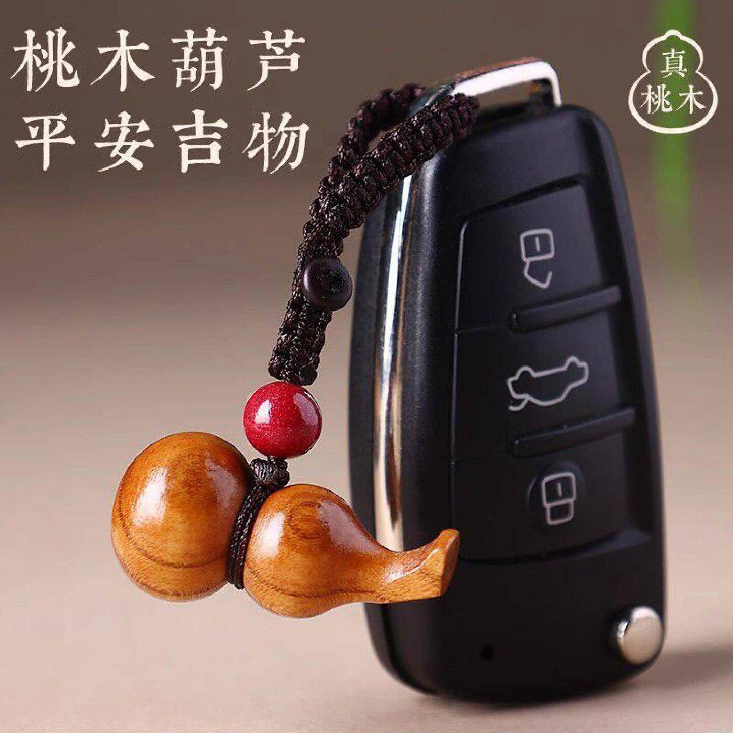 晶湖天然桃木葫芦紫金砂摆件男女钥匙扣福禄朱砂挂件手机链送男友
