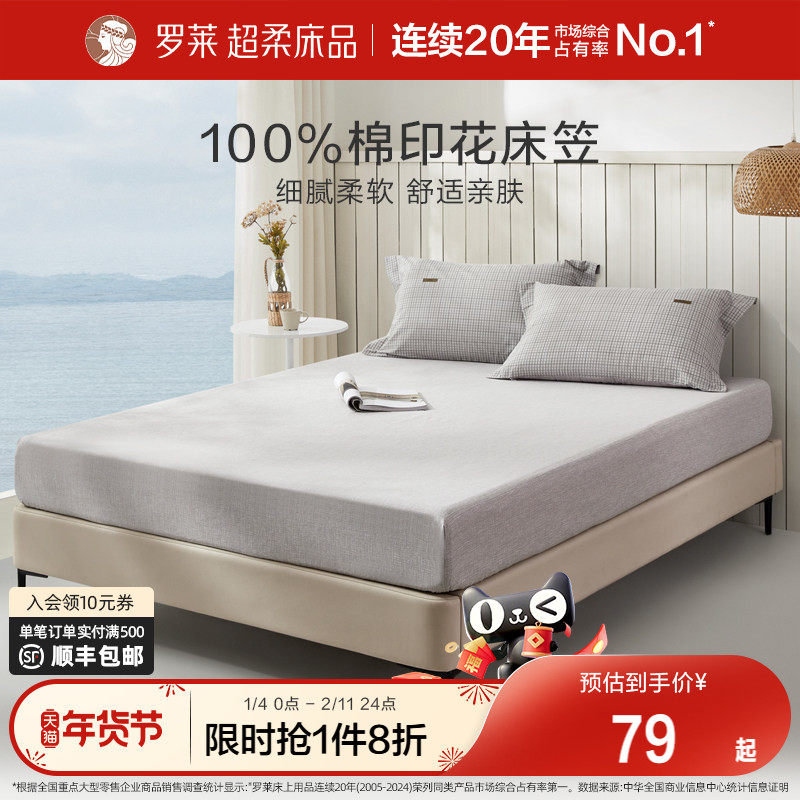 罗莱家纺床笠单件床罩席梦思保护套纯棉全棉简约学生宿舍单双人床