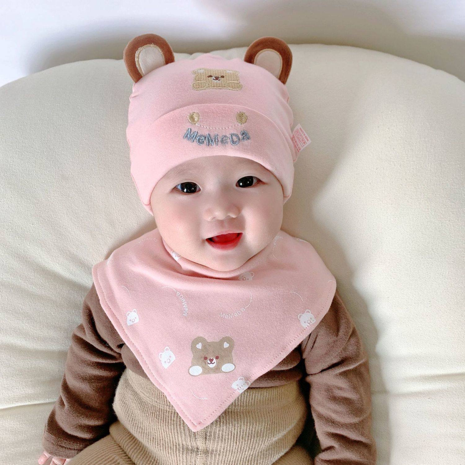 宝宝帽子春秋男孩2025新款女宝纯棉儿童冬季防风堆堆帽围脖两件套