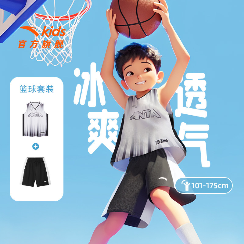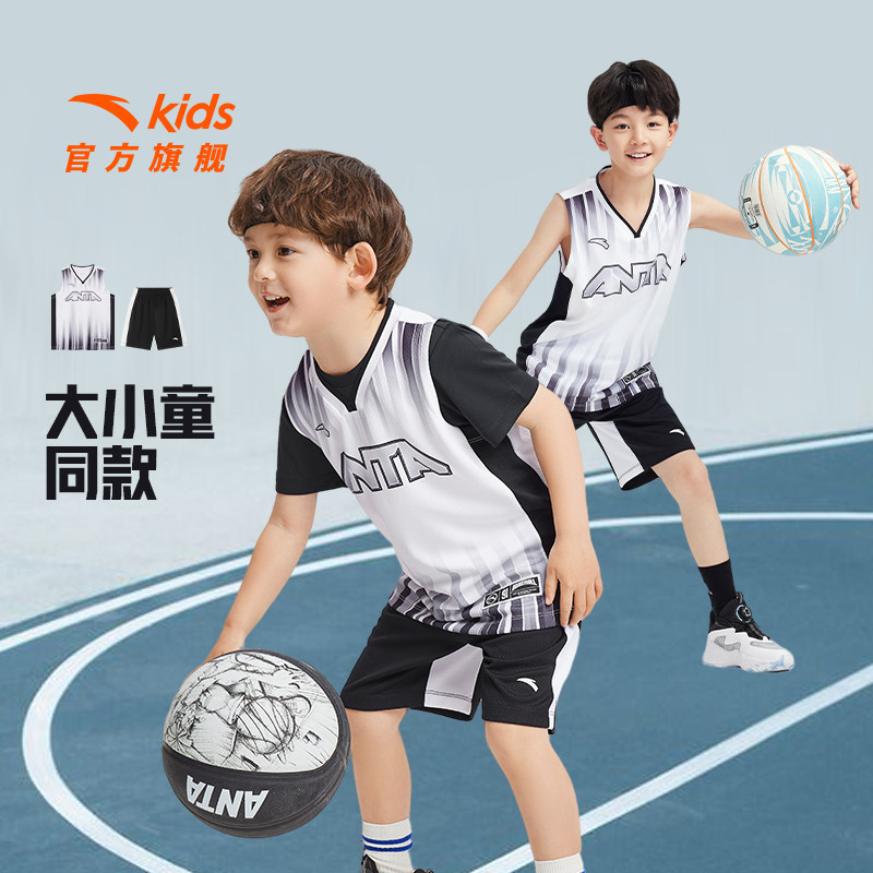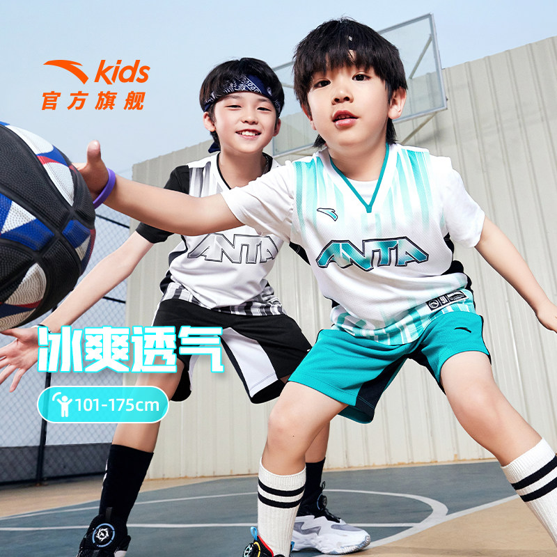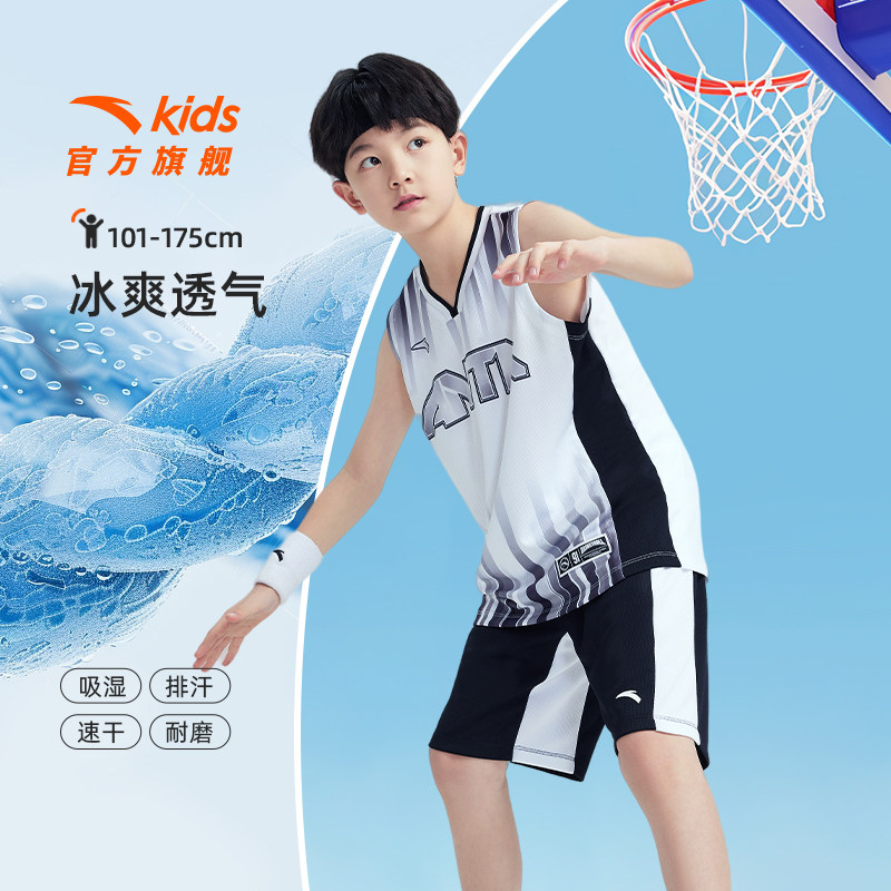 安踏儿童篮球服男童球衣运动套装夏装2023新款背心T恤短裤两件套