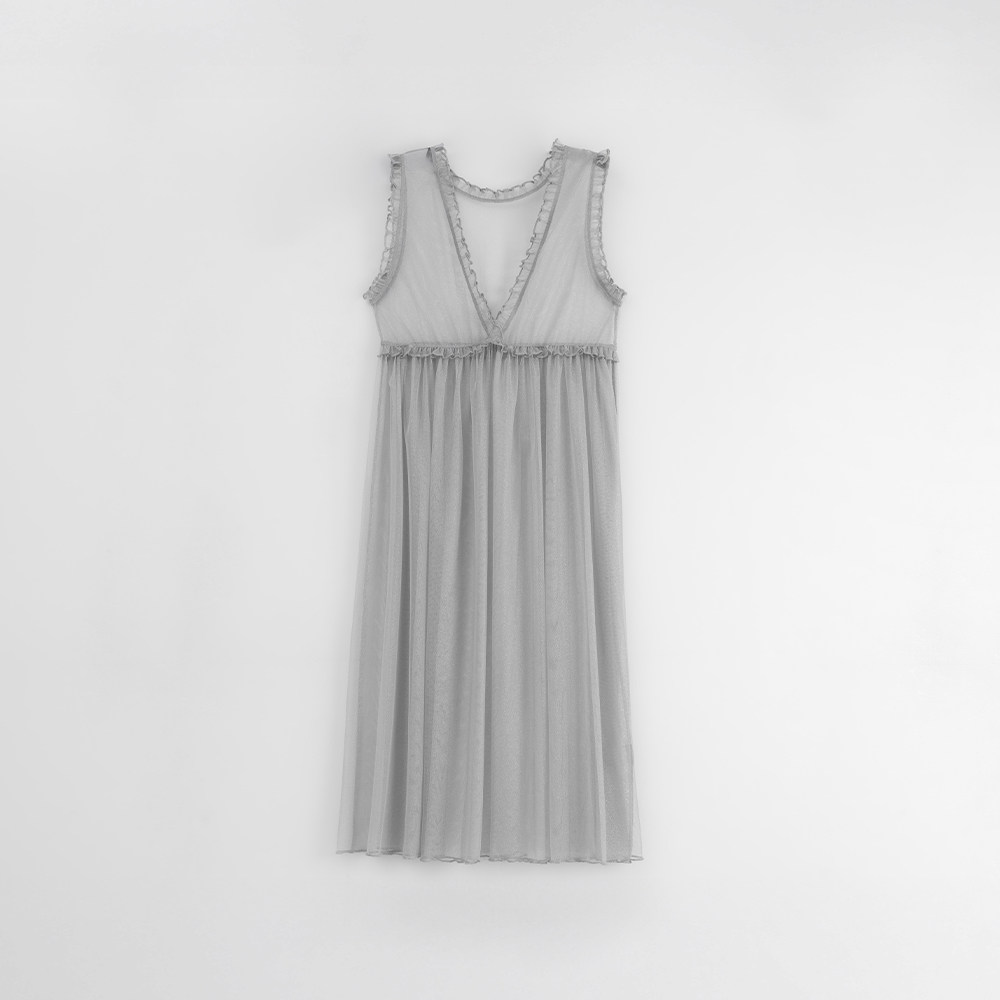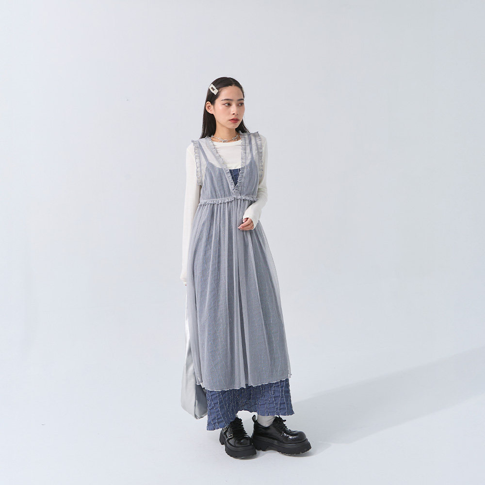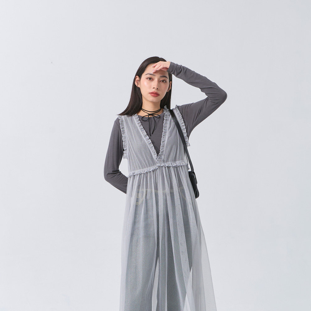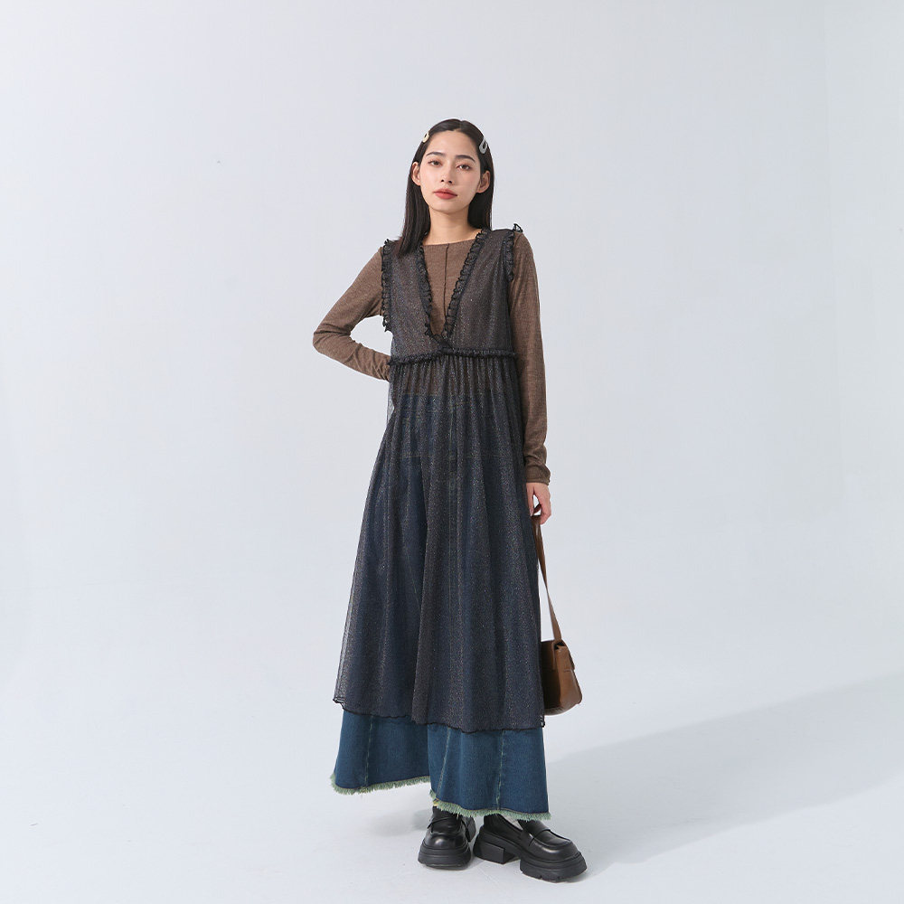 QUEENSHOP 2025秋冬新品女装荷叶金葱透纱两穿罩衫连衣裙01099200