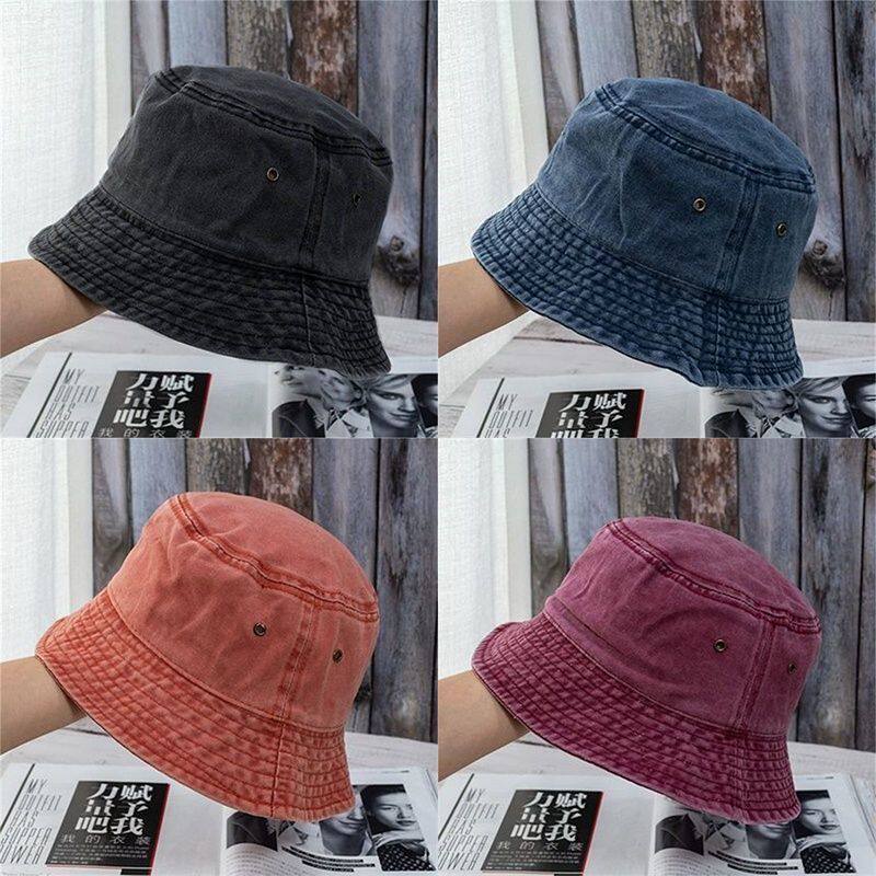 水洗牛仔渔夫帽女夏季遮阳防晒显脸小水桶盆帽日系大头围素颜帽子