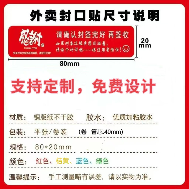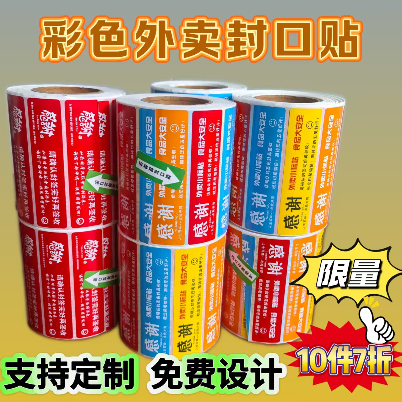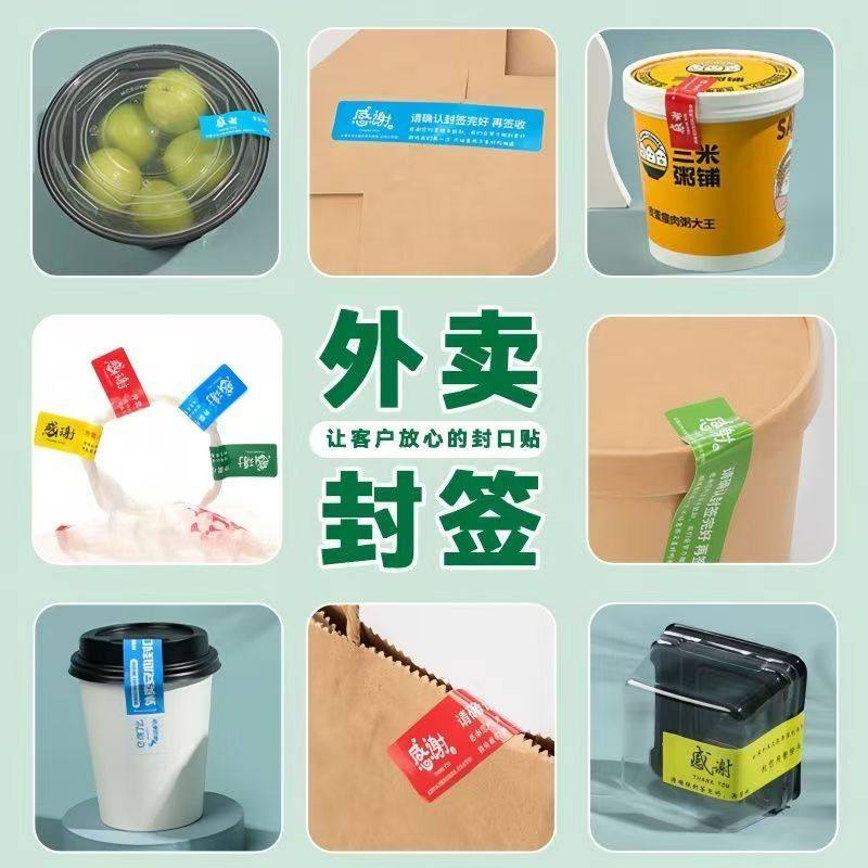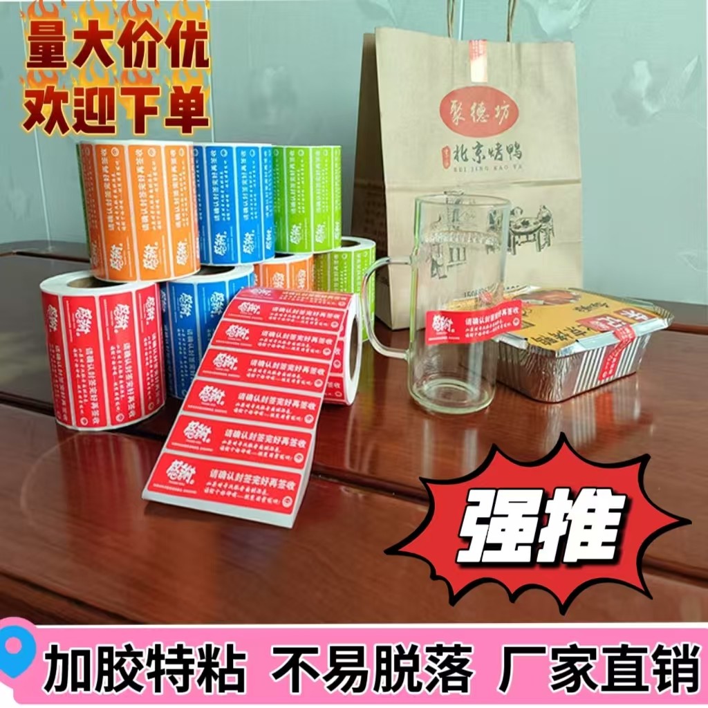 外卖封口贴纸长条定制美团打包包装标签食安封签饭团封口条长丰