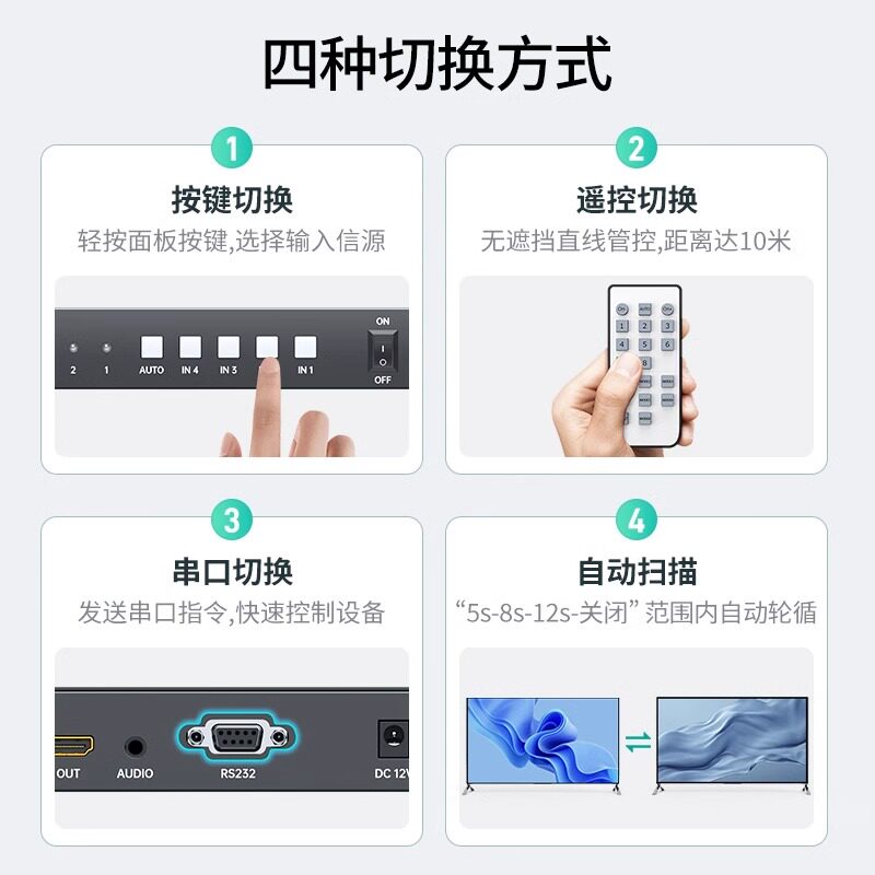 迈拓维矩 MT-HD0401W 无缝hdmi会议切换器带音频四进一出4口电脑屏幕显示器电视视频信号切屏器4K@30HZ