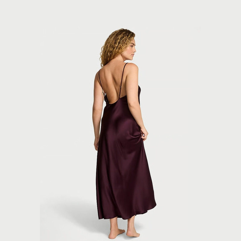[亲肤感真丝][100%桑蚕丝][真丝丝滑睡衣] 金三塔性感V领吊带睡裙