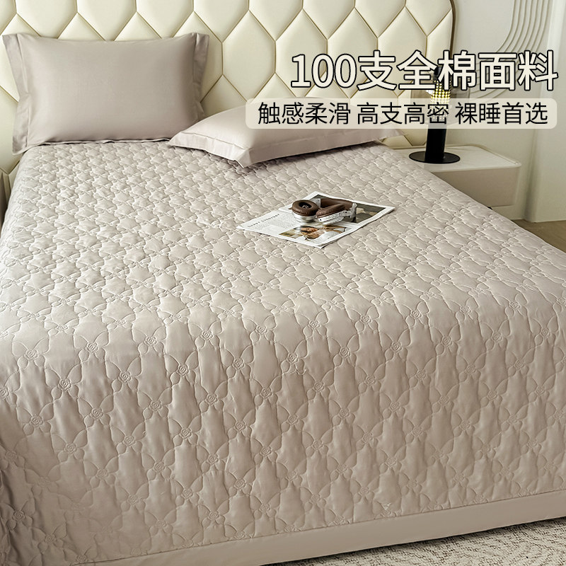 如奕桑蚕丝全棉床盖三件套轻奢高级感榻榻米绗缝垫被夹棉防滑床单