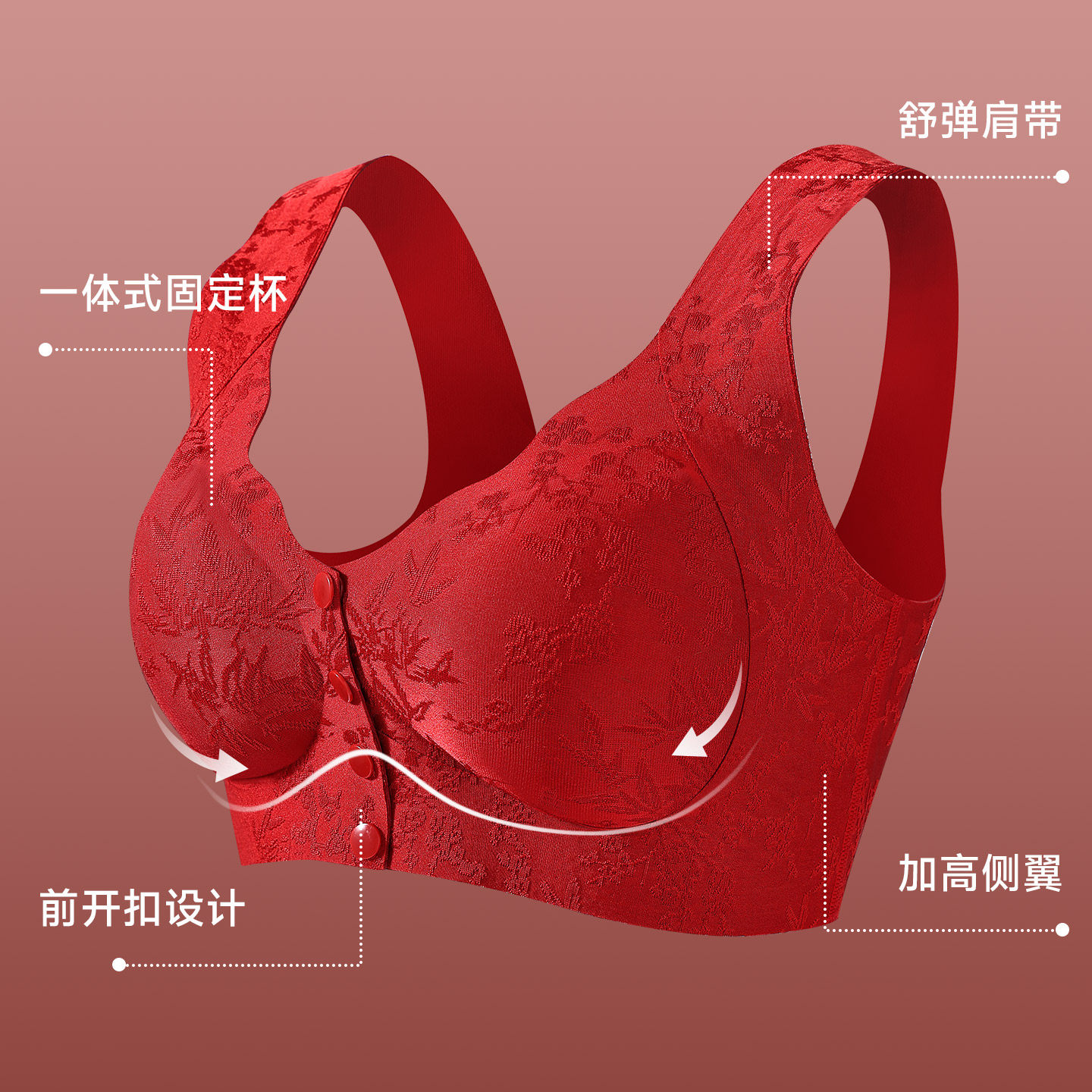 古今本命年红色内衣套装女前扣聚拢防下垂中老年新中式浮雕文胸罩