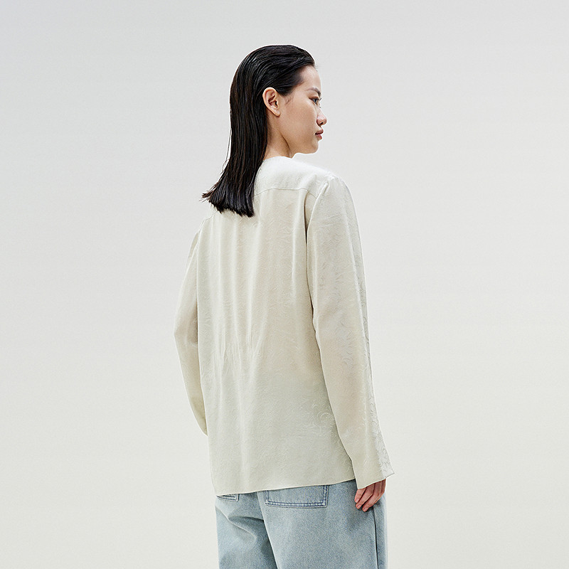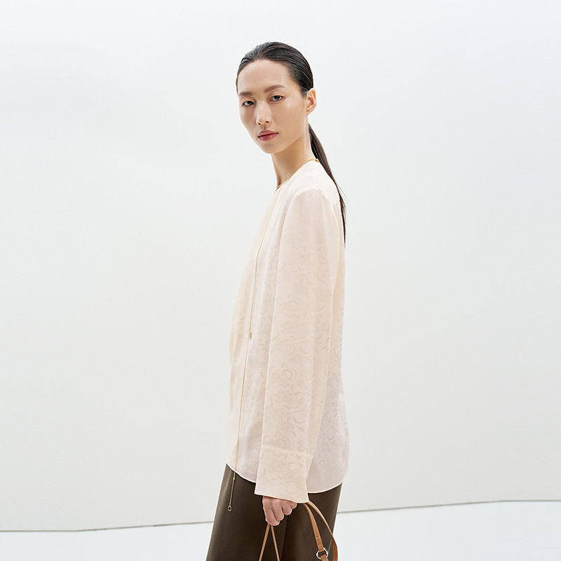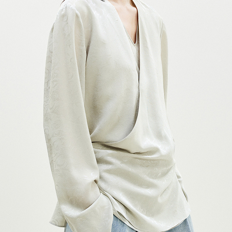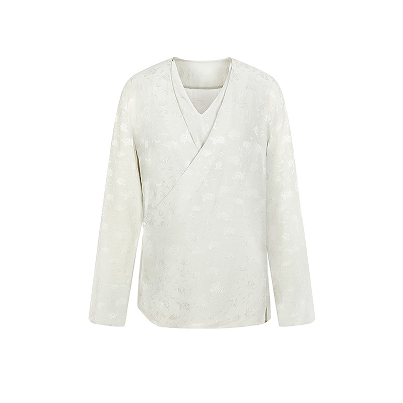 LESS新中式假两件衬衫女艺术感围裹桑蚕丝提花V领上衣女2P1211330