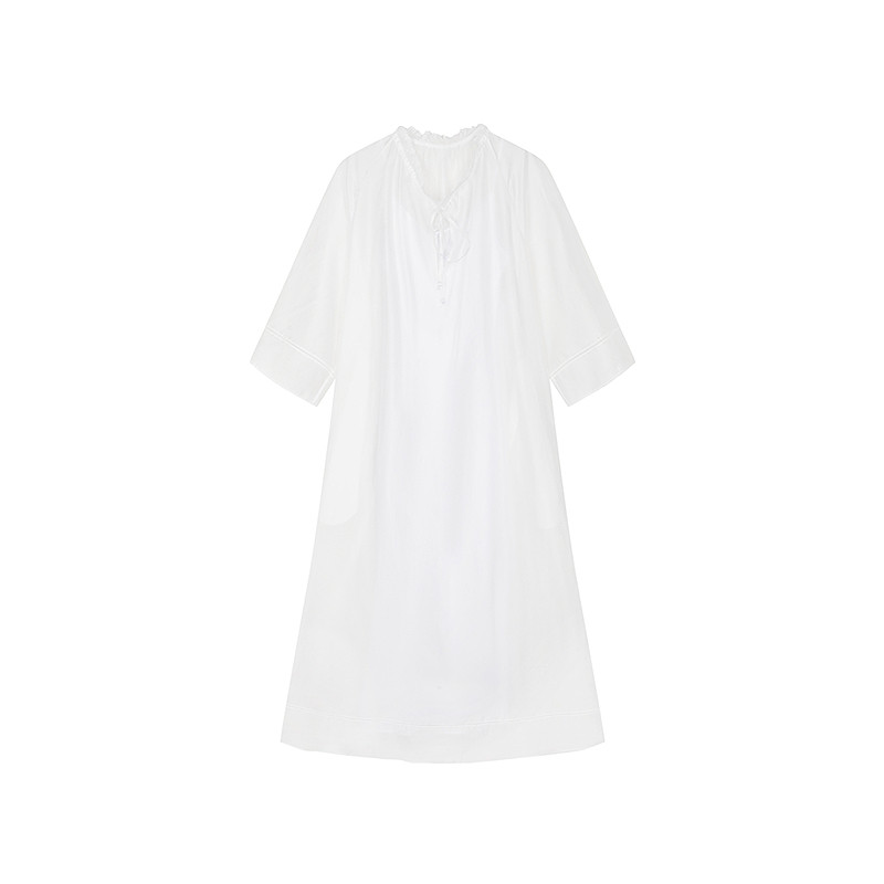 莫代尔短袖连衣裙夏季薄款家居睡裙宽松休闲中长款木耳边a字裙子