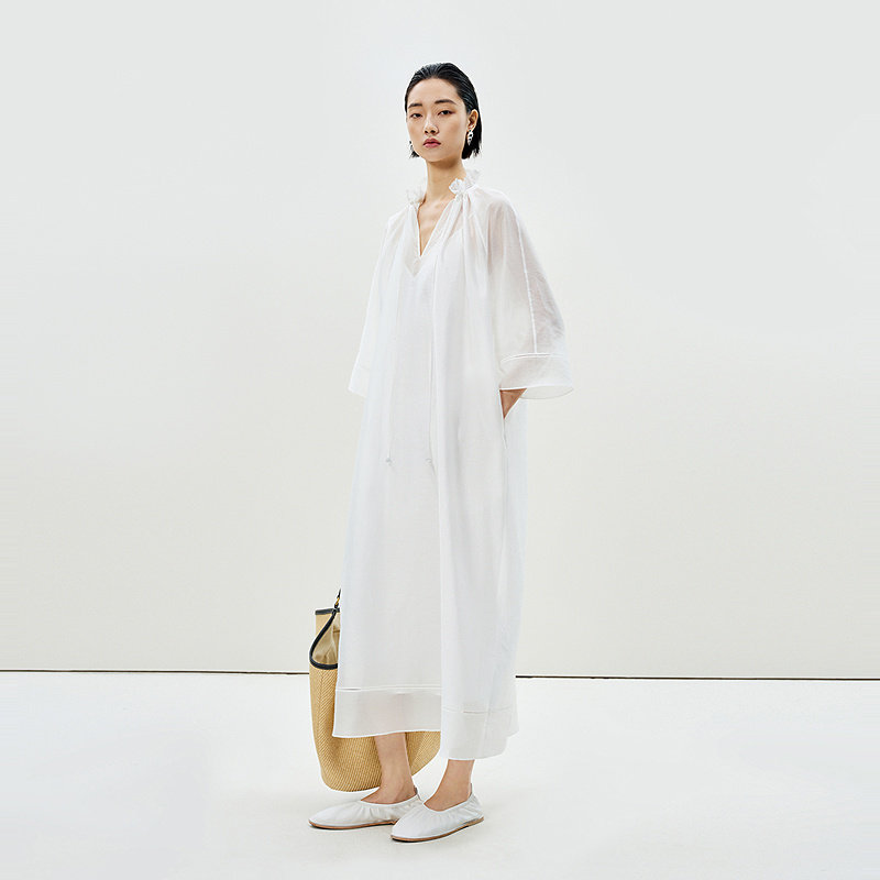 LESS夏季连衣裙两件套装法式度假环保莱赛尔插肩袖裙装2P6G20650