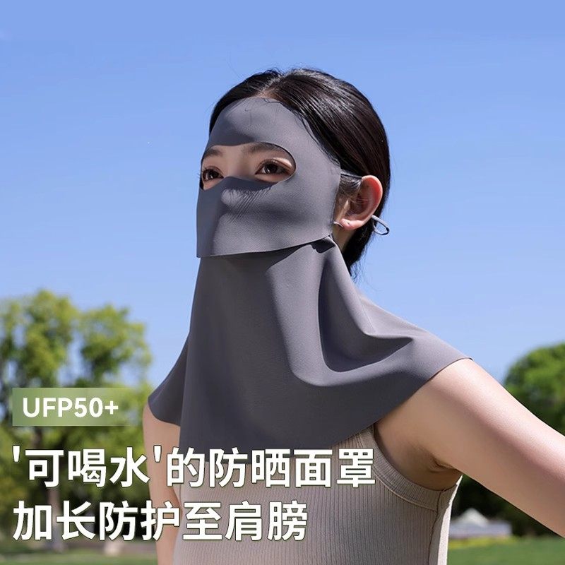 防晒面罩全脸防紫外线可喝水口罩2025新款护颈开口透气遮阳骑行纱