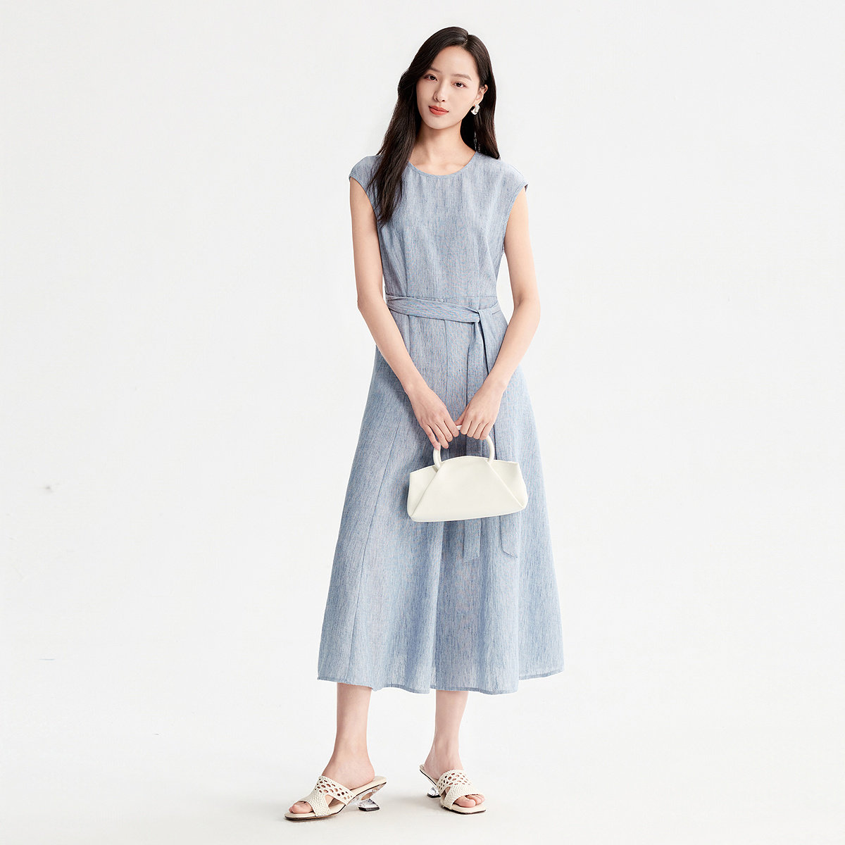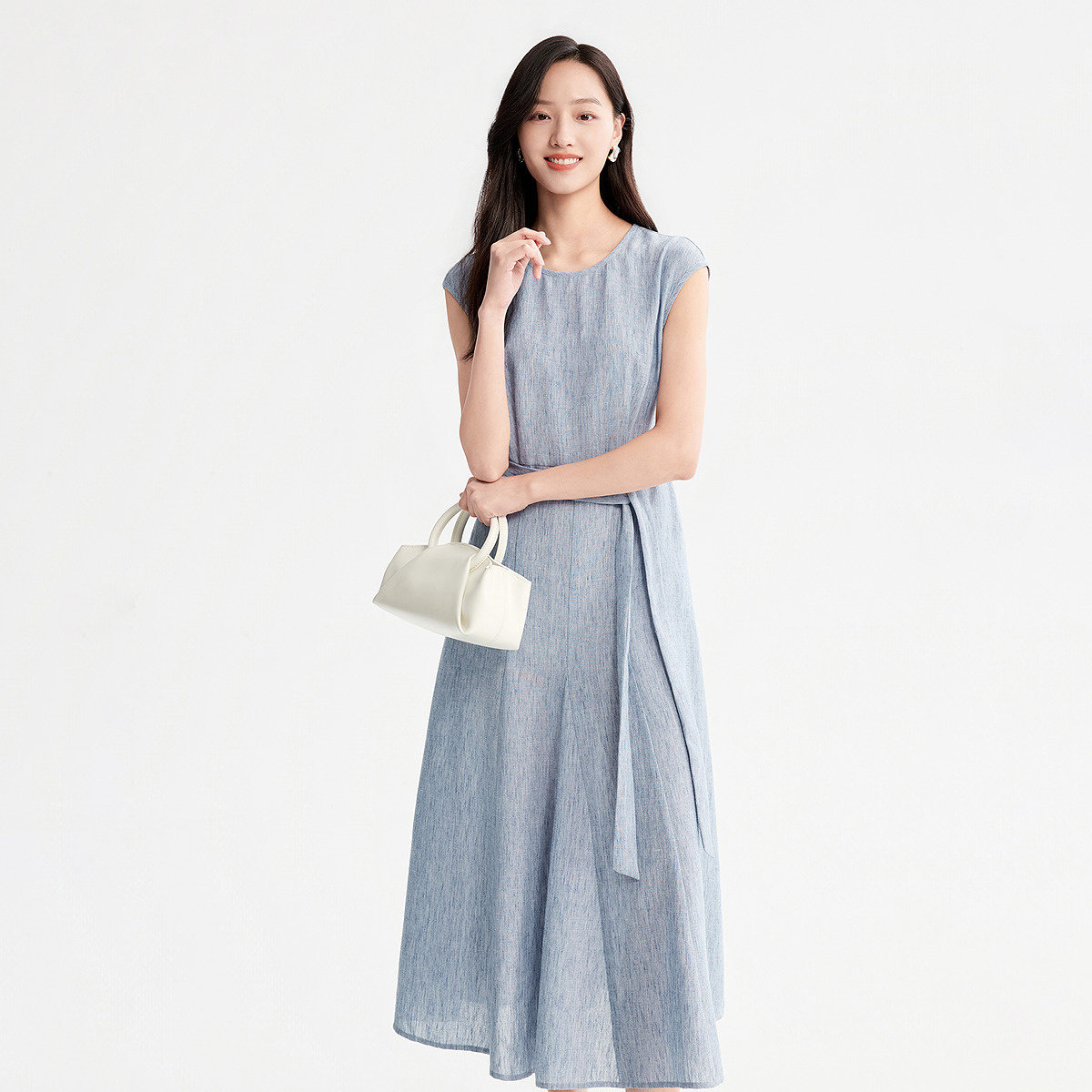 FINITY菲妮迪连衣裙2026年夏季新款简约系带领优雅通勤短袖长裙女