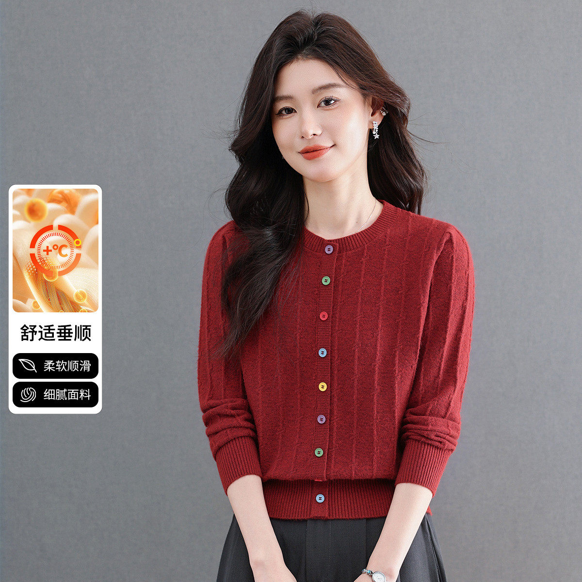 雪中飞 气质长袖春款毛衣打底衫女彩扣针织假开衫圆领短款纯色