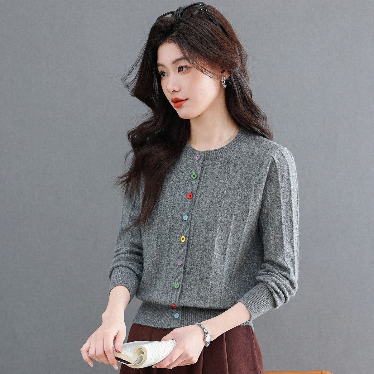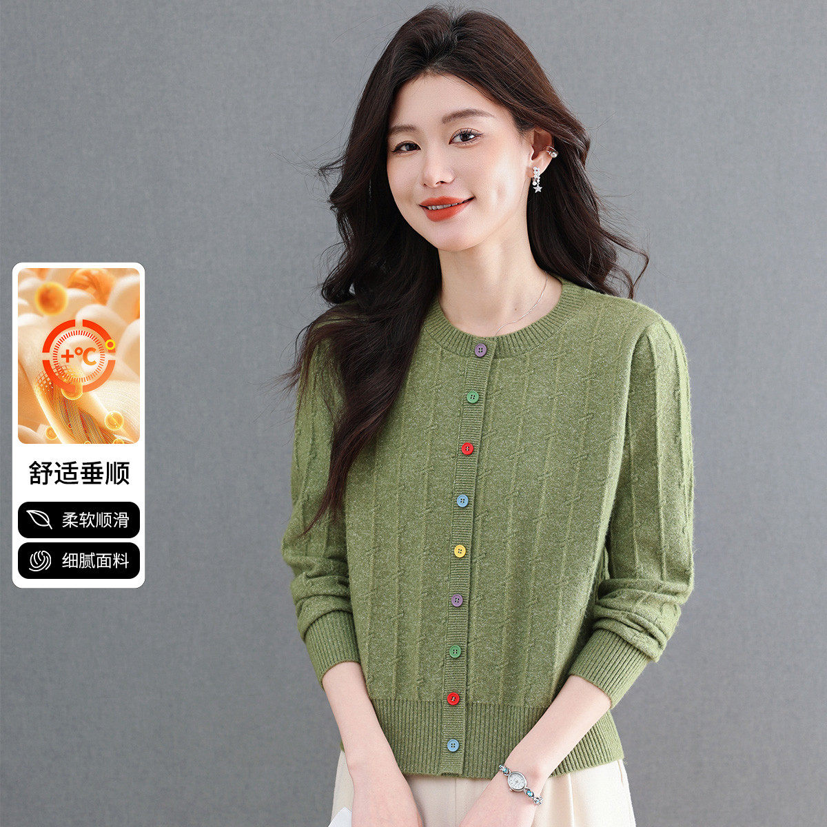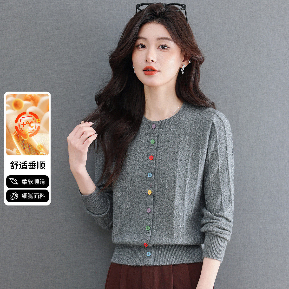 反季清仓春秋新款V领羊绒开衫女外搭纯色大码毛衣打底针织衫外搭