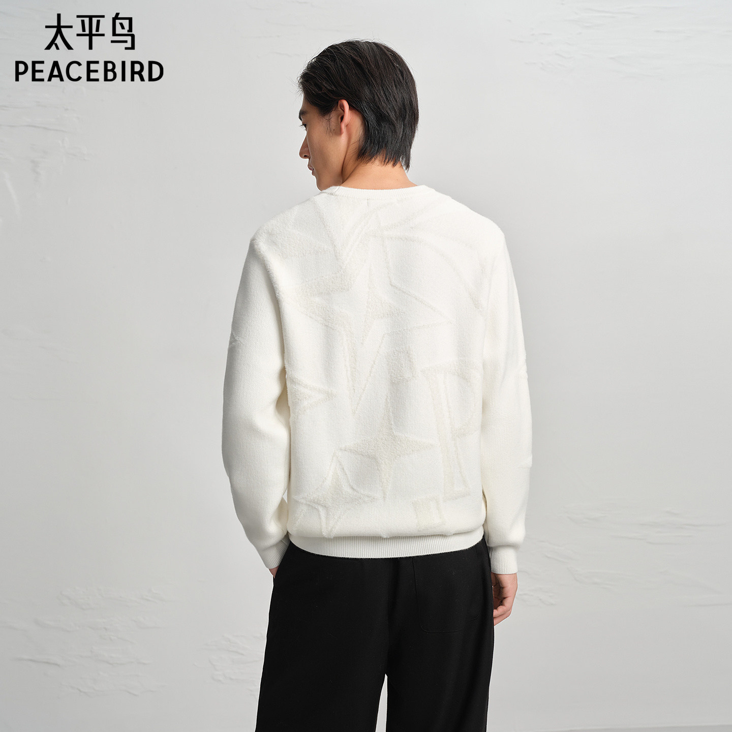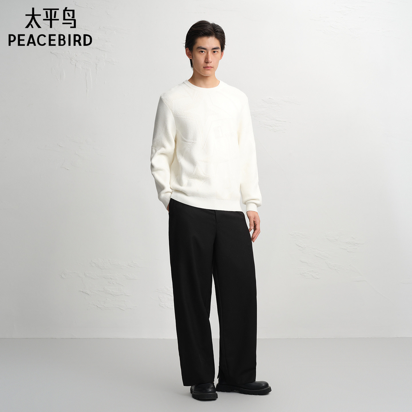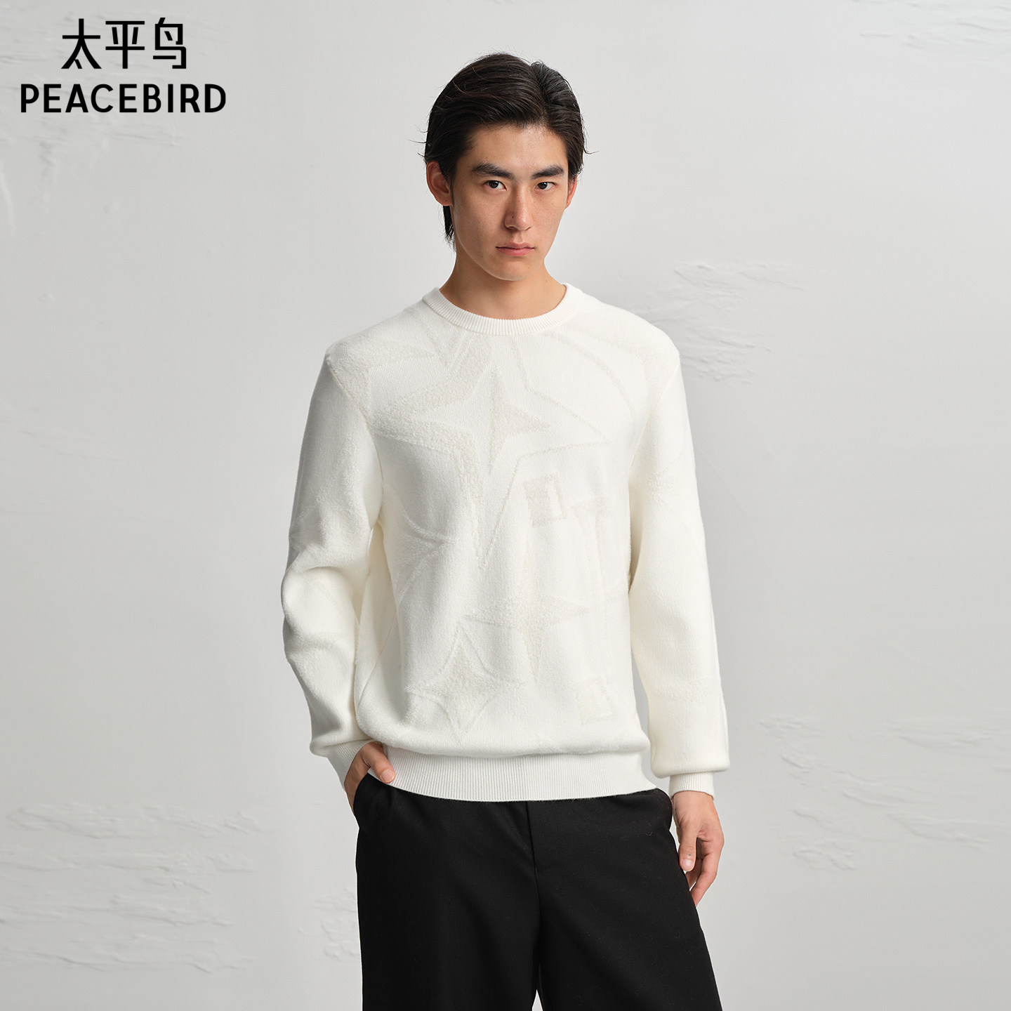 太平鸟男装立体肌理提花毛衫青年纯色时尚圆领毛衣通勤针织衫