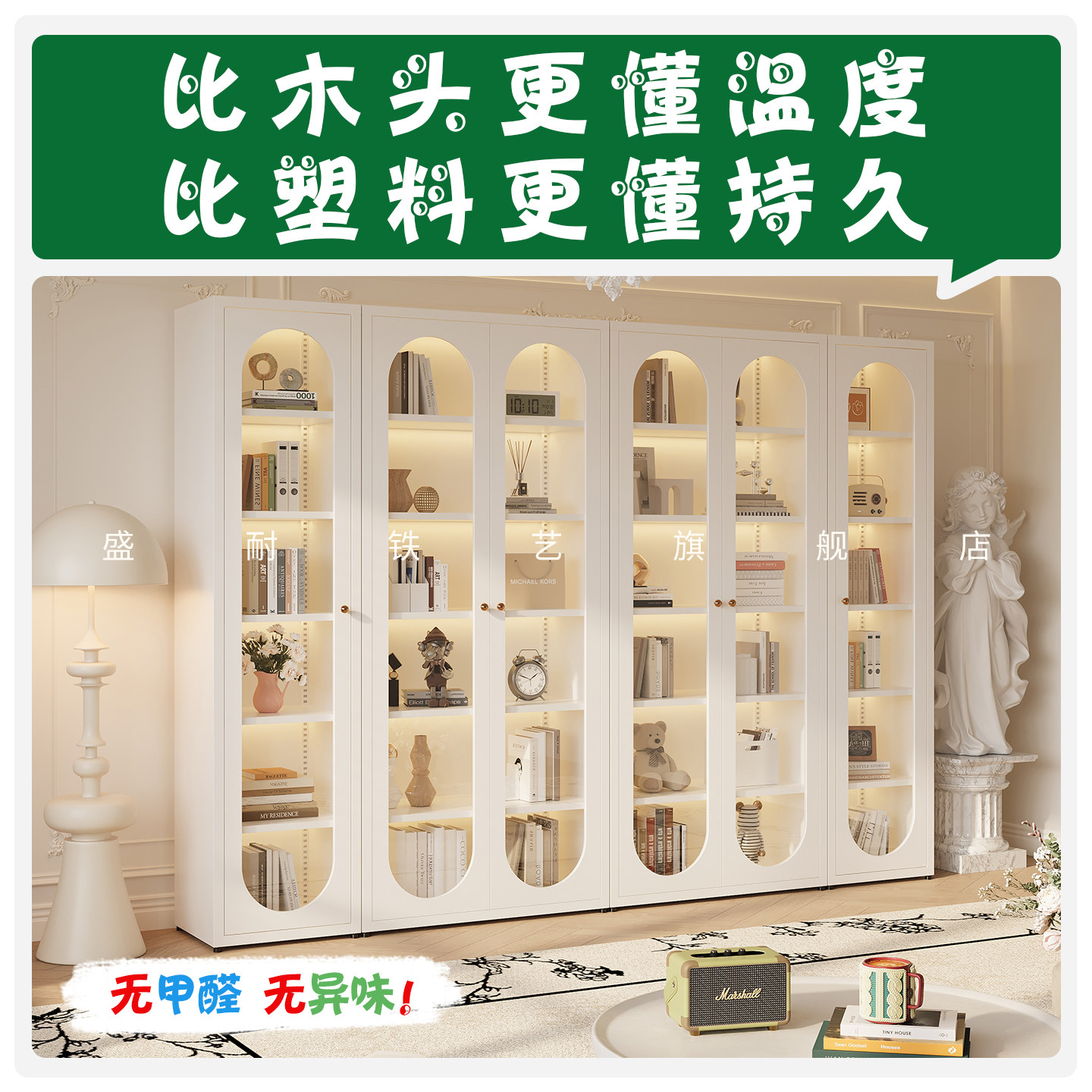 法式风简约无甲醛铁艺书柜书架2米高书橱家用客厅储物收纳展示柜
