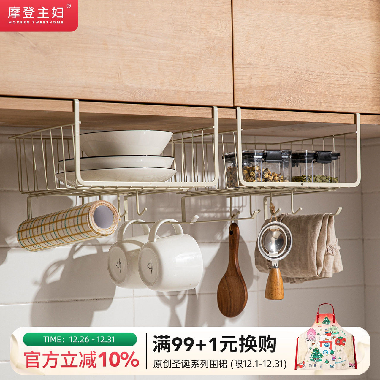 摩登主妇厨房置物架分层挂篮下挂收纳神器悬挂橱柜吊柜下用纸挂架