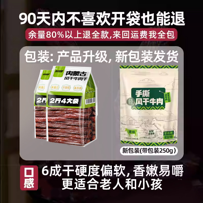 超干风干牛肉干内蒙古正宗手撕减低肥脂特产即零食官方旗舰店年货