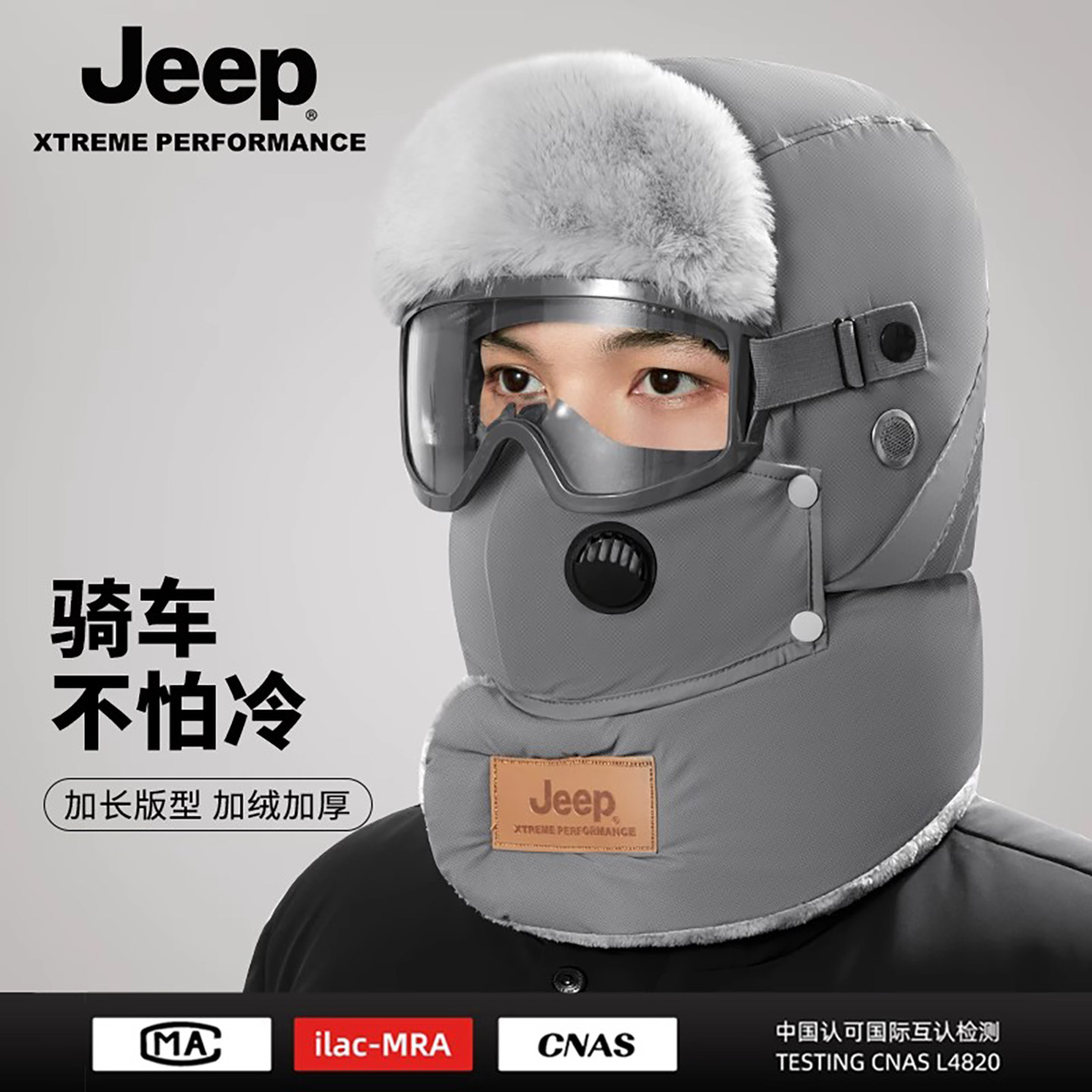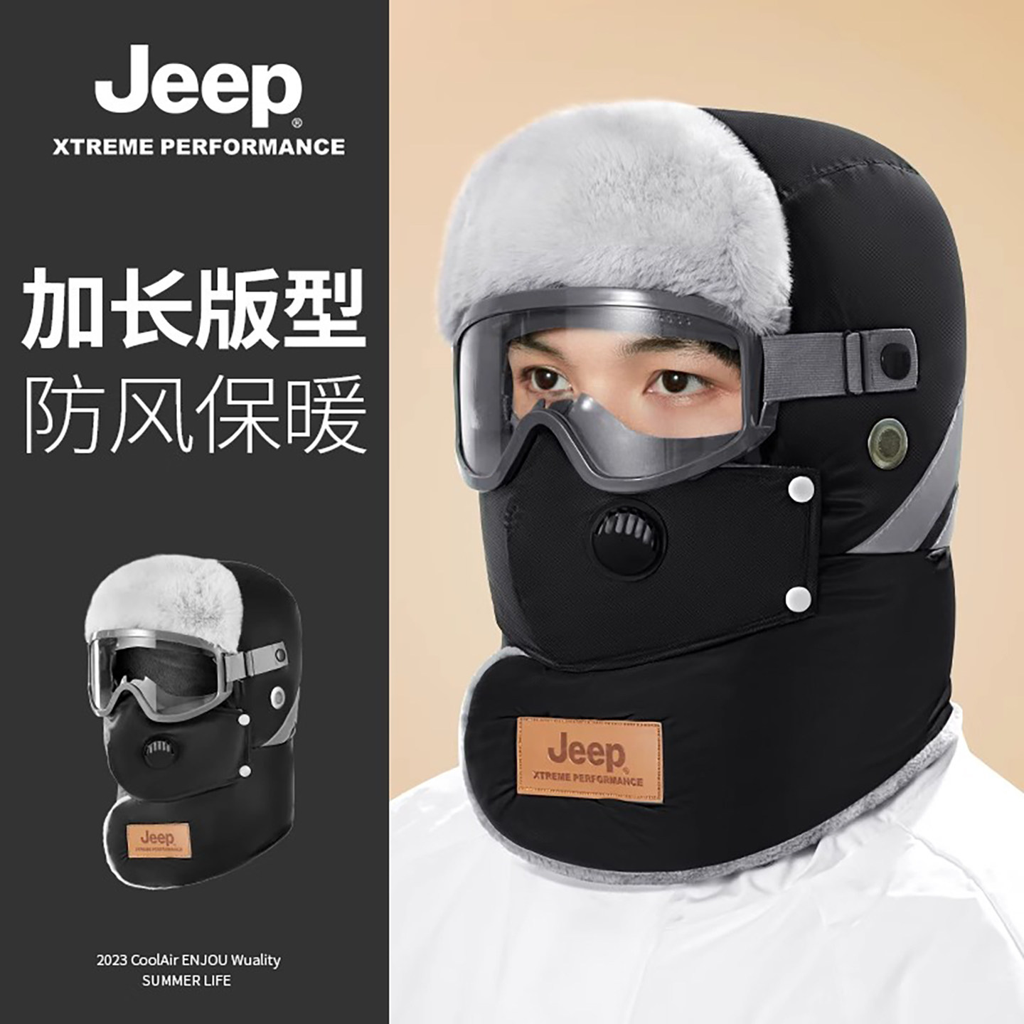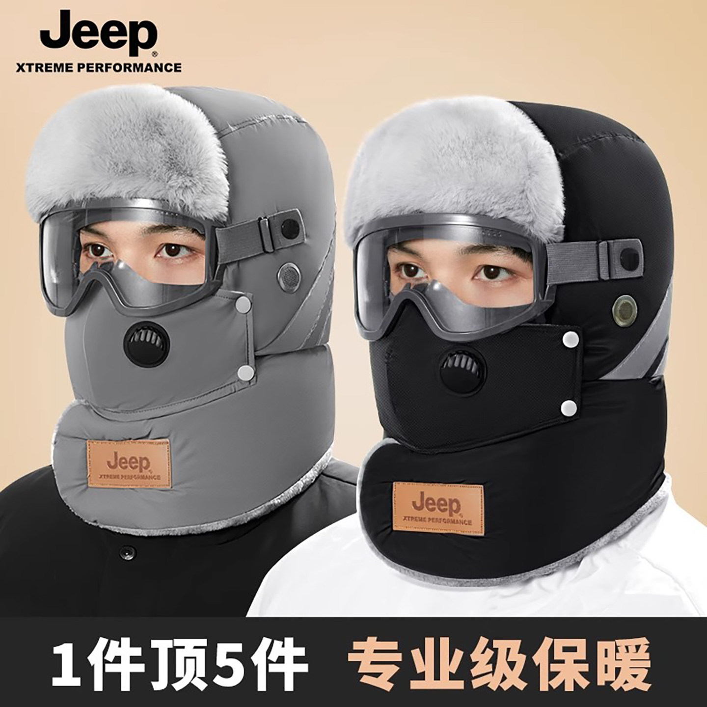 jeep吉普雷锋帽男冬季保暖神器东北电动车面罩骑车男士防风帽子冬