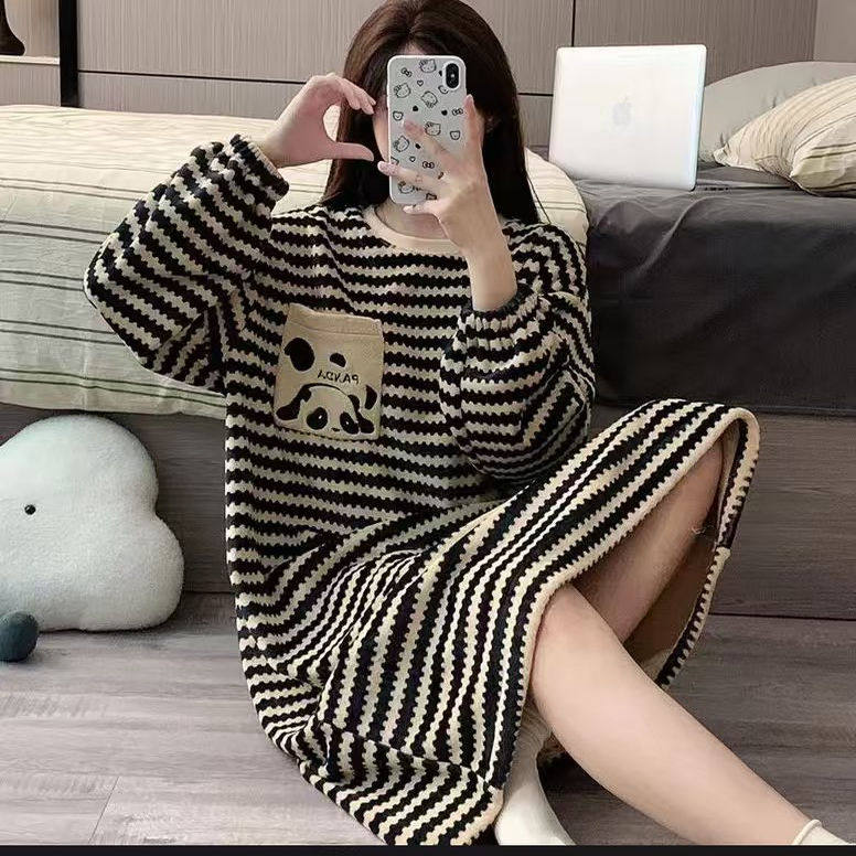 2025新款睡裙女秋冬季珊瑚绒睡裙卡通甜美法兰绒加厚可外穿连衣裙