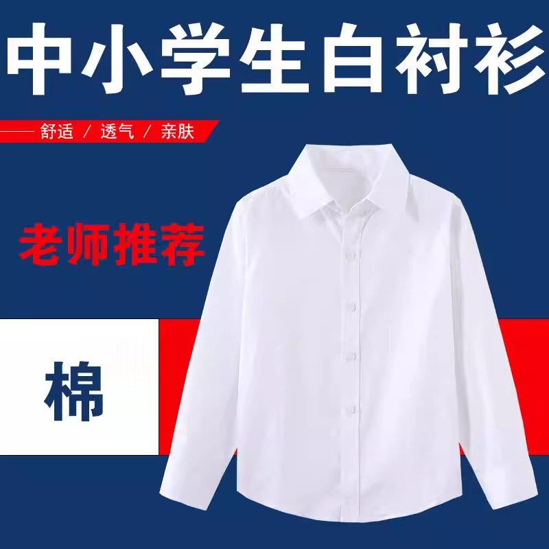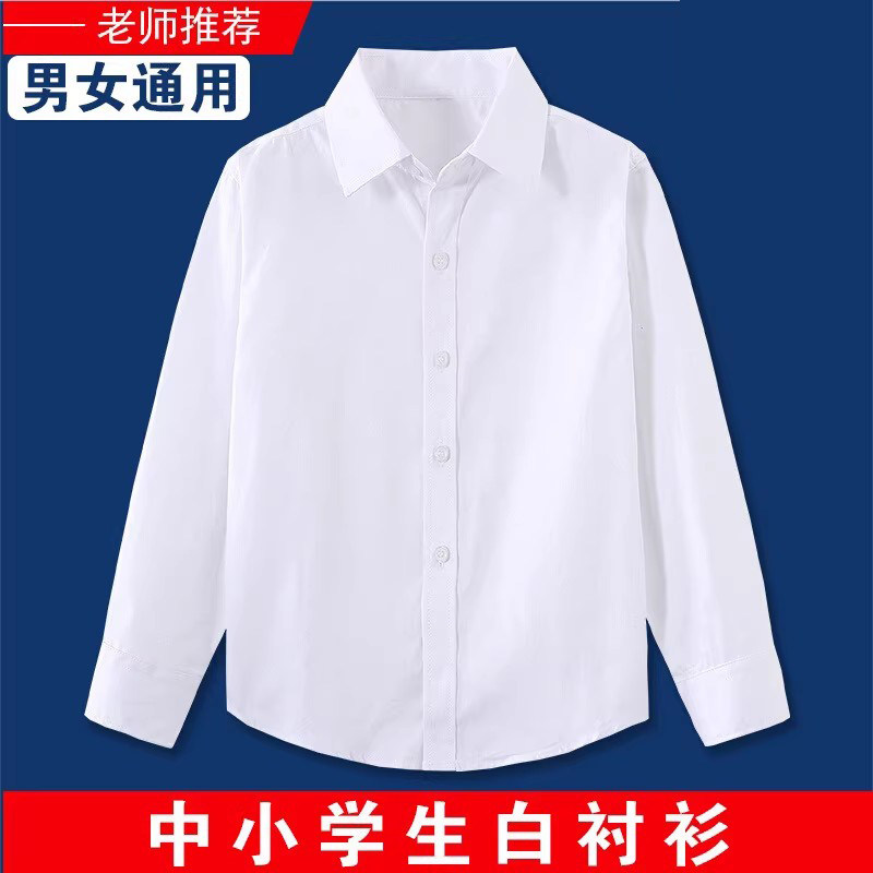 儿童白衬衫男童长袖棉四季小学生校服中大女童白色衬衣表演出服