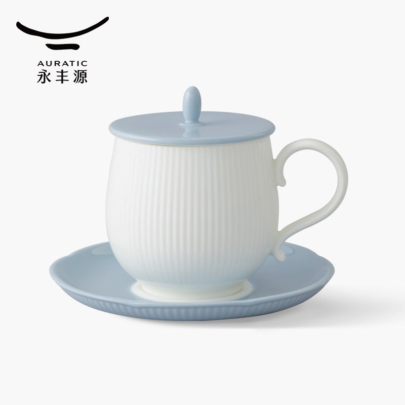 永丰源白月光3件套盖杯陶瓷浮雕茶杯情侣杯轻奢礼盒装