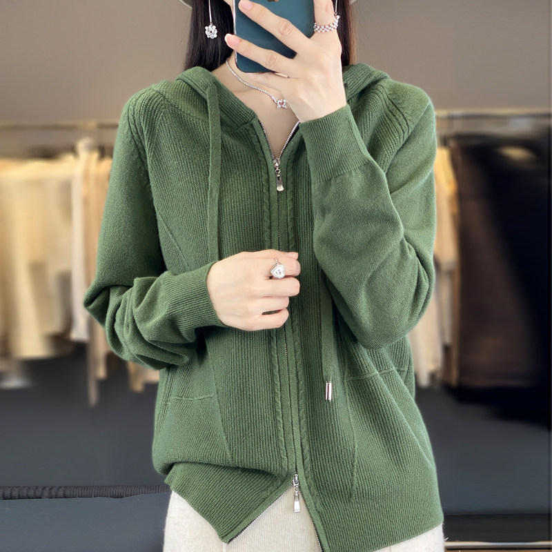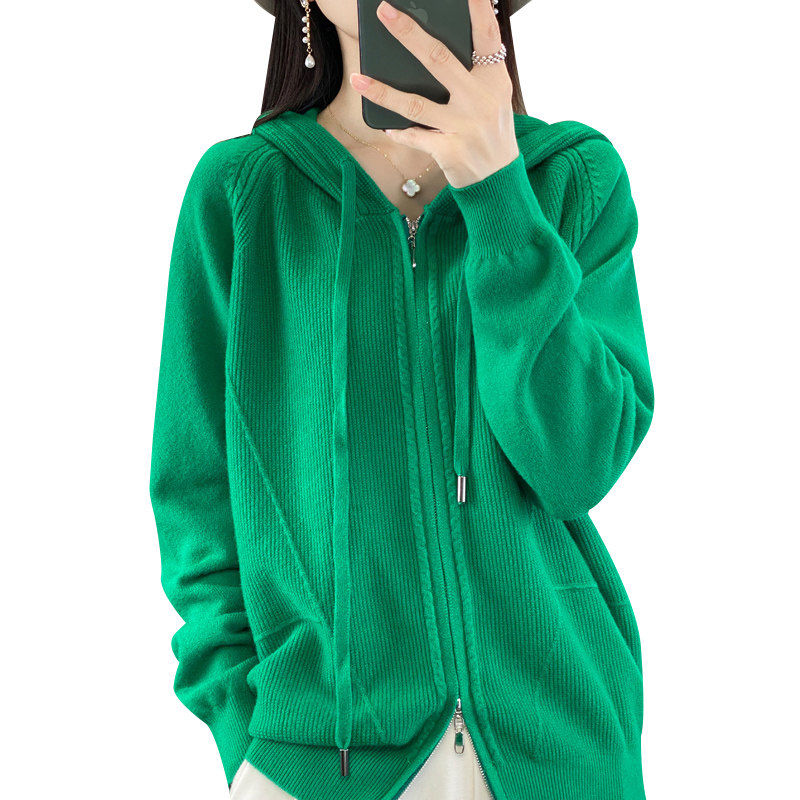 撤标撤柜(A)女春秋款拉链连帽卫衣宽松大码女装秋冬针织开衫毛衣