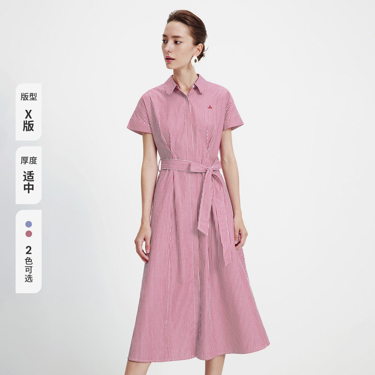 Navigare意大利小帆船粉色短袖连衣裙女2026夏季纯棉条纹衬衫裙