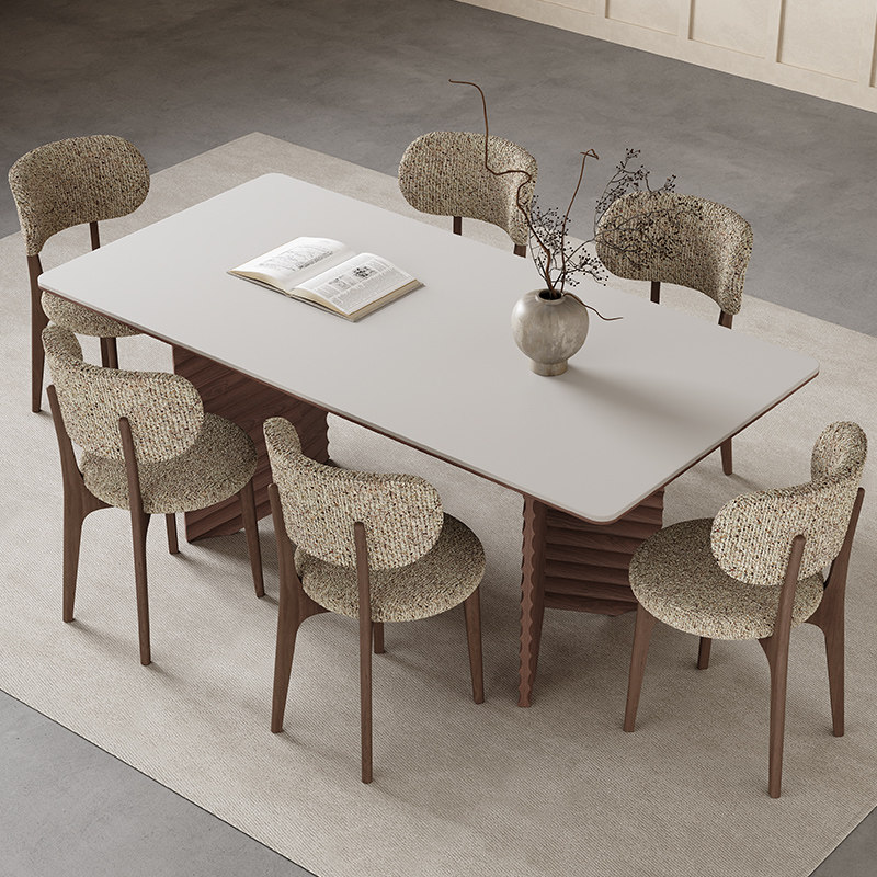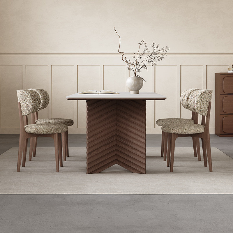 中古风实木岩板餐桌长方形橡木胡桃色饭桌诧寂风家用客厅岩板餐桌