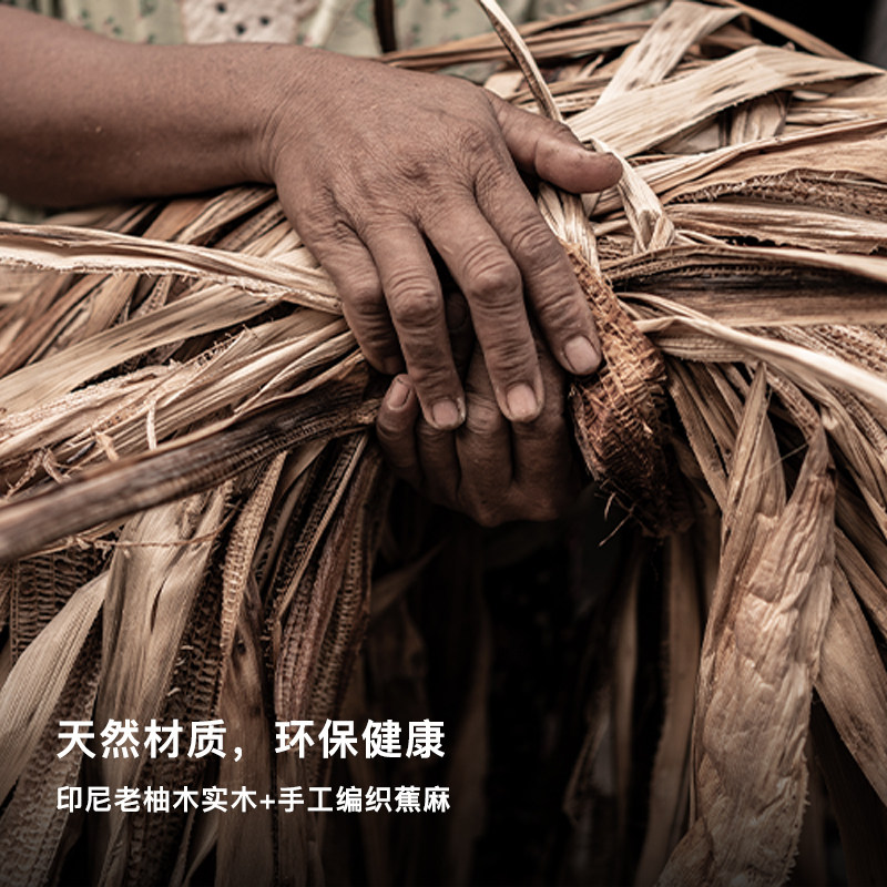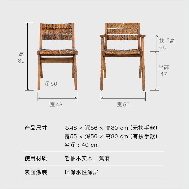 MountainLiving进口老柚木家具实木餐椅蕉麻手工编织中古风餐桌椅