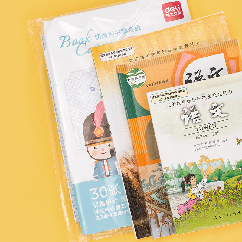 得力包书皮膜切角自粘包书膜课本书皮书套 32K/16K/A4多规格可选 小学生用透明磨砂防水塑料书皮包书壳 xx