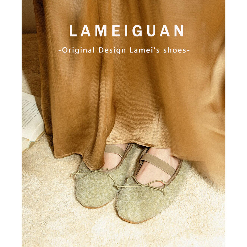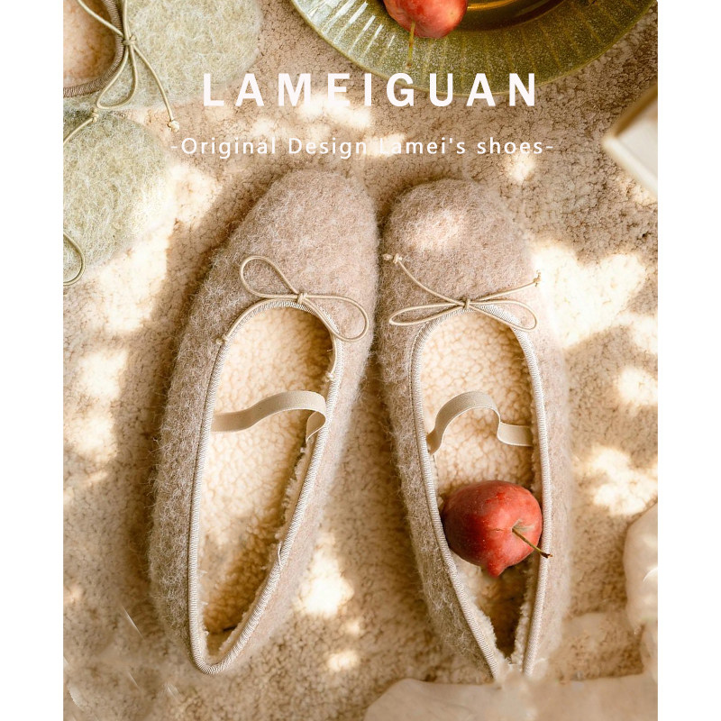 法式蝴蝶结羊羔绒毛芭蕾舞单鞋女2025新款浅口加绒平底玛丽珍棉鞋