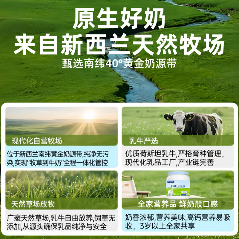 新西兰进口全脂高钙牛奶粉中老年学生奶粉中成人旗舰店配方全家