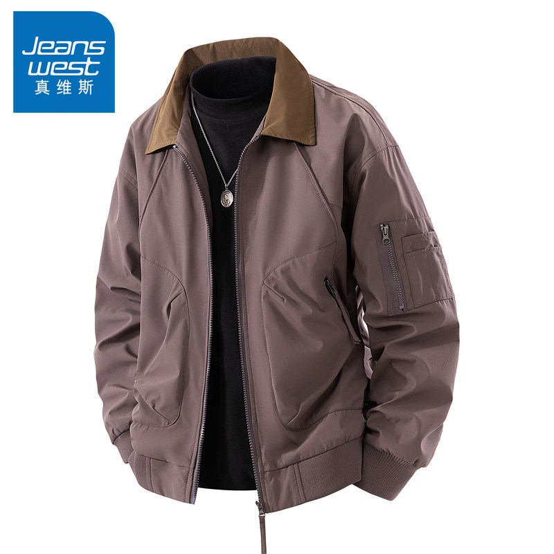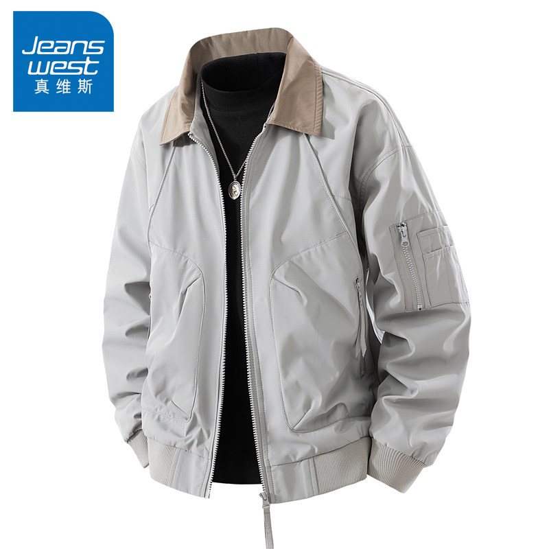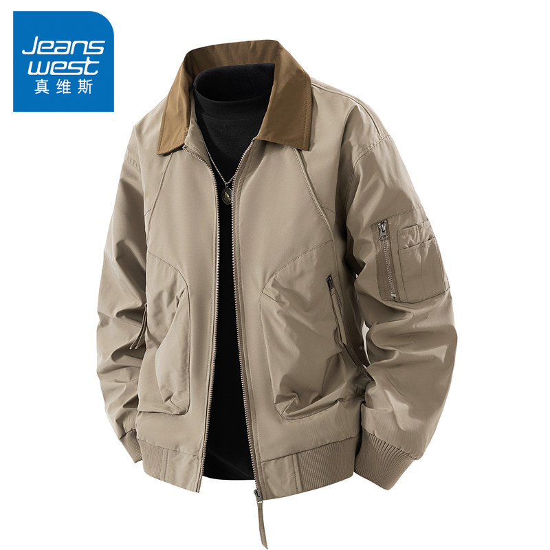 N5真维斯外套男2025秋季新款美式潮牌撞色翻领工装男士春秋装夹克