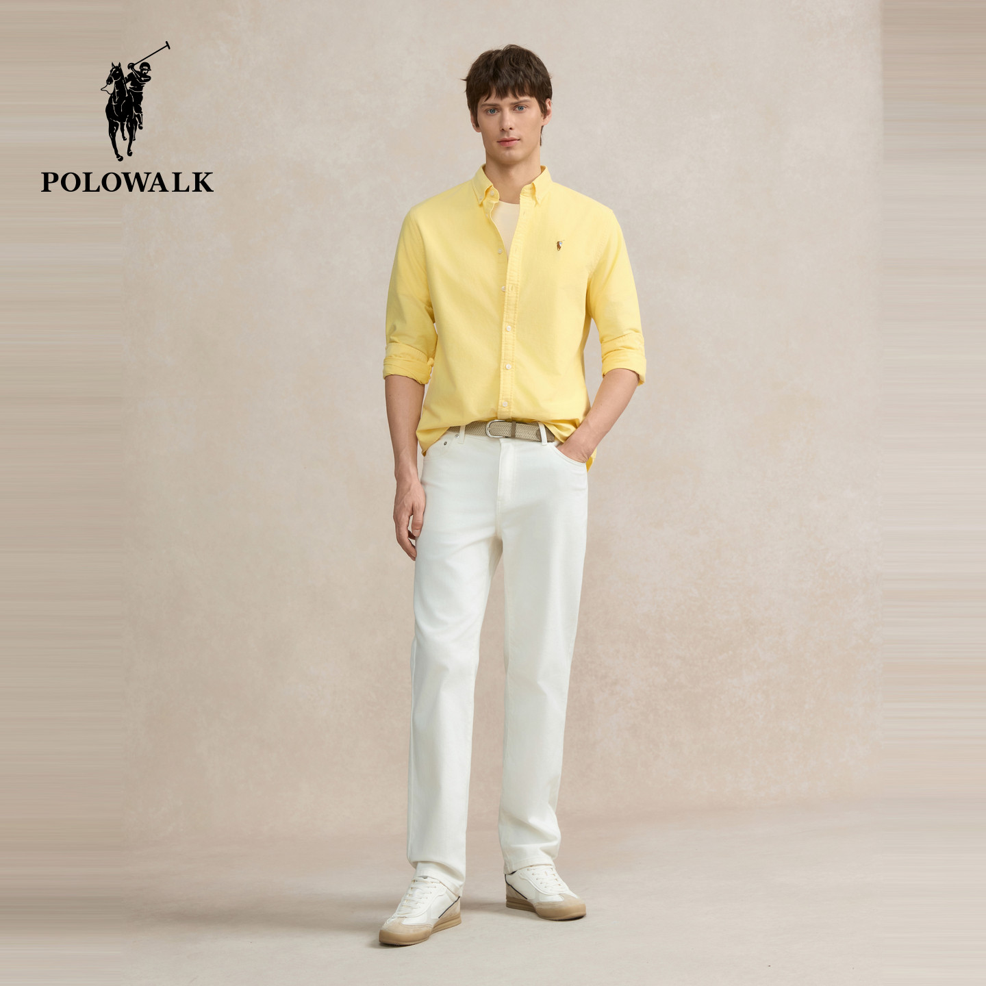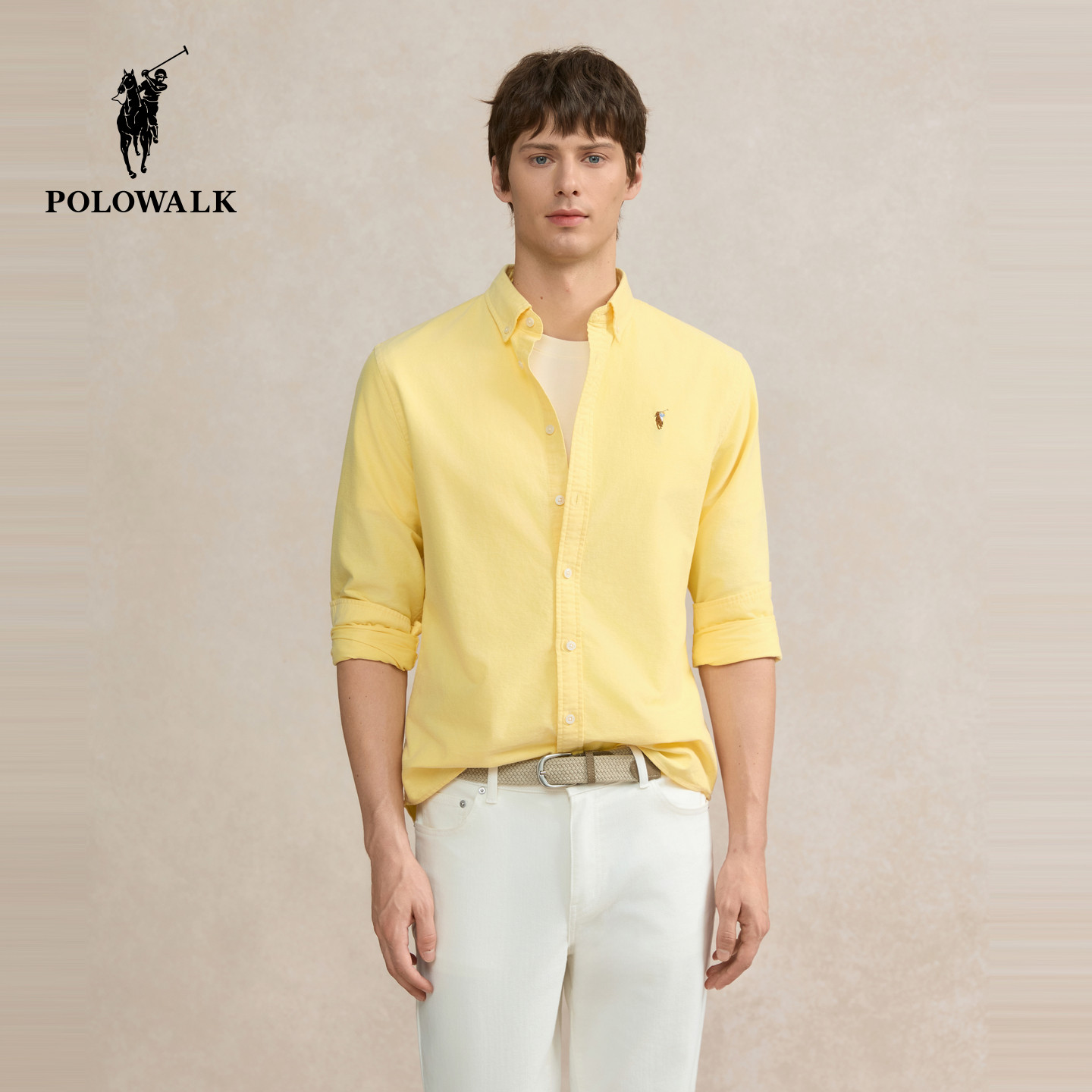 【100%纯棉】POLOWALK男装长袖衬衫2026春季新品翻领纯棉衬衣男式