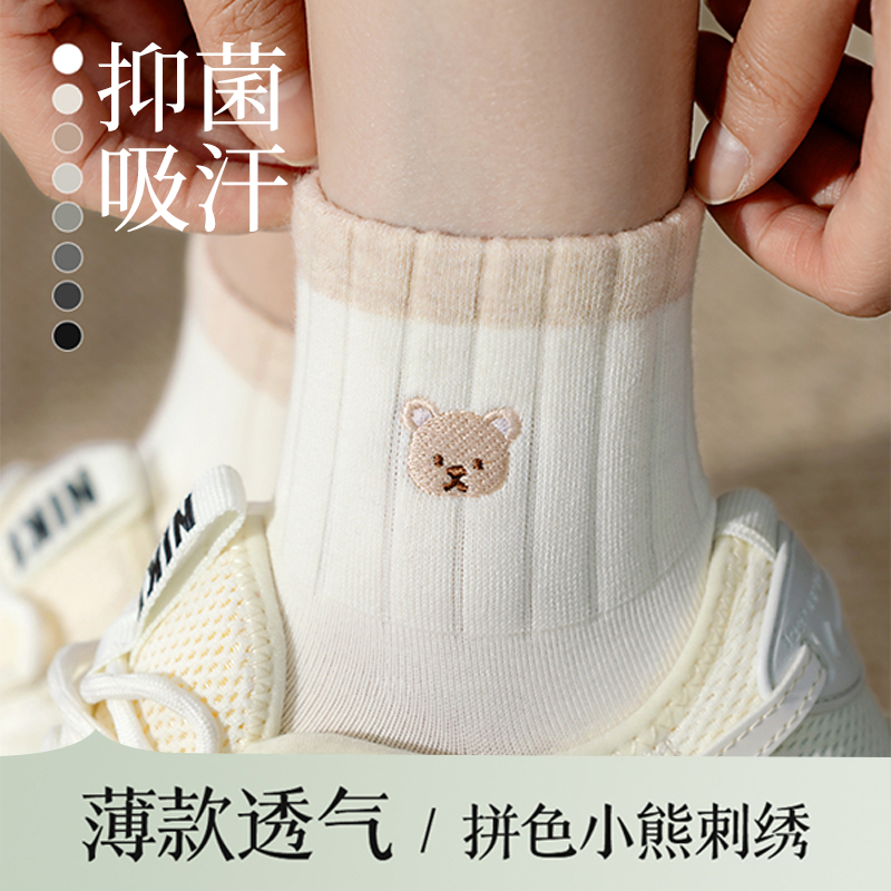 袜子女款纯棉中筒袜秋冬季抗菌防臭吸汗运动棉袜春秋款无骨短筒袜