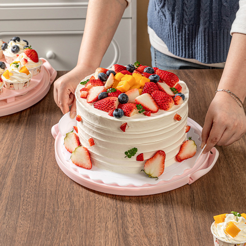 生日蛋糕盒手提便携硬塑料打包10寸透明家商烘焙圆形重复使用包装